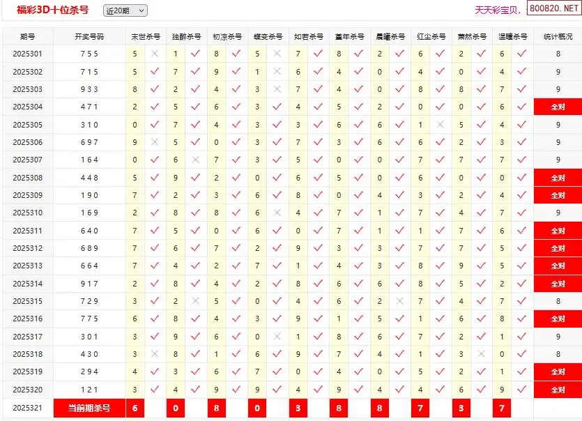 首页〉 3D杀码 走势图 3D胆码3D预测3D图谜3D字谜解太湖3D技巧3D条件3D杀码天齐图库走势图工具试机号 25321期彩宝贝福彩3D百十个位杀号 专题:3D杀码十专家 发布时间:2025-12-01 11:23 开奖:3D开奖结果3D近10期试机号 推荐:宝彩APP 免费方案 智能荐号 热点导航 公告: 天齐新版APP<中大多>上线,点击领鲜 最新文章 中大多 3D第2025321卜算子奇偶分析 3D第2025321真帝王宝图预测3D准 25年321期[浮梦一生]3d杀一胆 320错7825年321期[醉相思]3d杀一码 320错7825年321期[忆往昔]3d本期杀号 320错8425年321期[顾棋]本期3d杀号 320错7625年321期[流星风雨]3d杀一码 320错8325年321期[财运亨通]杀一胆 320错91 更多3D杀码 > 福彩3D 双色球 大乐透 排列三 更多> 3D胆码 3D预测 3D字谜 3D图谜 解太湖 3D条件 3D杀码 P3预测 P3图谜 P3字谜 P3条件 P3胆码 P3杀码 热点导航 天齐图库 走势图 工具图表 试机号 宝彩专家 智能荐号 菜单导航 关闭 福彩3D 3D专家 3D胆码 3D预测 3D字谜 3D图谜 解太湖 3D条件 3D杀码 3D技巧 3D走势图 体彩P3/P5 P3专家 P3预测 P3图谜 P3字谜 P3条件 P3胆码 P3杀码 P5预测 P3走势图 双色球 双色球专家 双色球预测 双色球杀号 双色球字图 双色球胆码 双色球走势 双色球技巧 大乐透 大乐透专家 大乐透预测 大乐透杀号 大乐透胆码 大乐透技巧 大乐透走势 天齐图库 七星彩 七星彩专家 七星彩预测 七星彩图谜 七星彩杀号 七星彩技巧 七星彩走势 天齐走势 七乐彩 七乐彩专家 七乐彩预测 七乐彩杀号 七乐彩技巧 七乐彩走势 热点导航 彩宝网 宝彩网 宝彩网 开奖公告 宝彩专家 牛票票