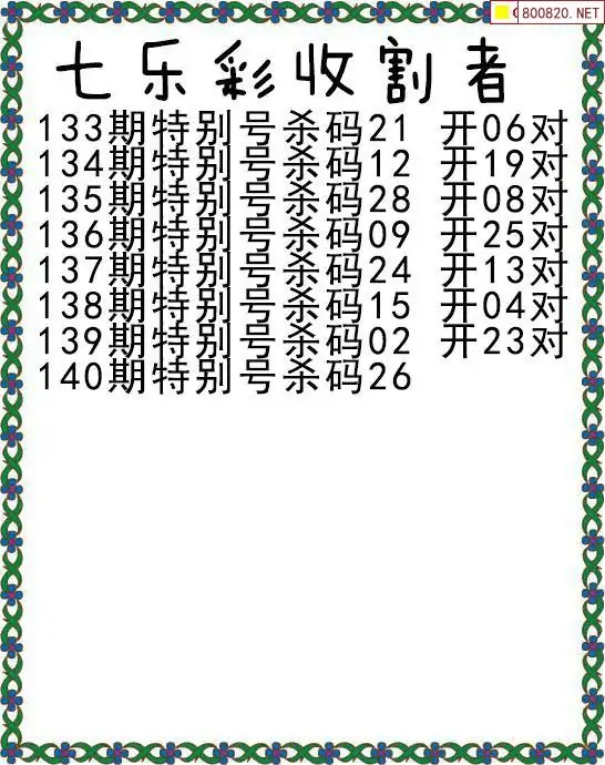 首页〉 七乐彩杀号 走势图 七乐彩预测七乐彩杀号七乐彩技巧天齐图库走势图工具试机号 七乐彩25年140期收割者特别号杀码图迷 发布时间:2025-12-06 08:17 走势图:七乐彩基本走势图七乐彩期尾走势图 推荐:宝彩APP 免费方案 智能荐号 热点导航 公告: 天齐新版APP<中大多>上线,点击领鲜 最新文章 中大多 七乐彩第2025140徐文选3D直选已更新 七乐彩第2025140小蓝精灵独胆9中6 2025139期彩宝贝七乐彩十大专家杀号定胆汇总 (四张)25139期澳客七乐彩专家杀号25139期彩经网七乐彩十大专家组选杀号黄忠2025139期七乐彩专家杀一码图七乐彩2025139期降龙罗汉杀号图2025年钟馗139期七乐彩杀特别号码图 更多七乐彩杀号 > 福彩3D 双色球 大乐透 排列三 更多> 3D胆码 3D预测 3D字谜 3D图谜 解太湖 3D条件 3D杀码 P3预测 P3图谜 P3字谜 P3条件 P3胆码 P3杀码 热点导航 天齐图库 走势图 工具图表 试机号 宝彩专家 智能荐号 菜单导航 关闭 福彩3D 3D专家 3D胆码 3D预测 3D字谜 3D图谜 解太湖 3D条件 3D杀码 3D技巧 3D走势图 体彩P3/P5 P3专家 P3预测 P3图谜 P3字谜 P3条件 P3胆码 P3杀码 P5预测 P3走势图 双色球 双色球专家 双色球预测 双色球杀号 双色球字图 双色球胆码 双色球走势 双色球技巧 大乐透 大乐透专家 大乐透预测 大乐透杀号 大乐透胆码 大乐透技巧 大乐透走势 天齐图库 七星彩 七星彩专家 七星彩预测 七星彩图谜 七星彩杀号 七星彩技巧 七星彩走势 天齐走势 七乐彩 七乐彩专家 七乐彩预测 七乐彩杀号 七乐彩技巧 七乐彩走势 热点导航 彩宝网 宝彩网 宝彩网 开奖公告 宝彩专家 牛票票
