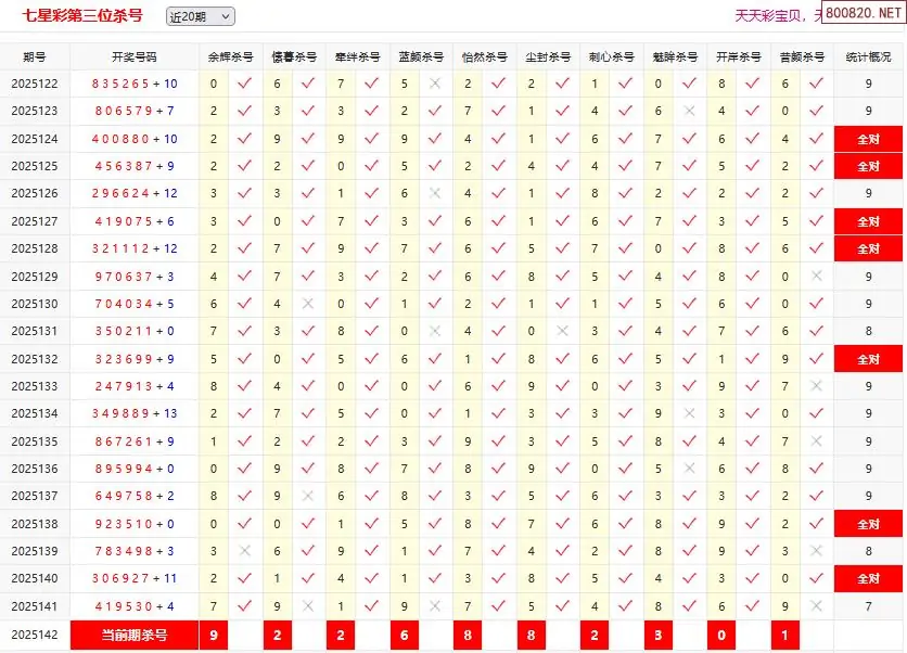 首页〉 七星彩杀号 走势图 七星彩预测七星彩图谜七星彩杀号七星彩技巧天齐图库走势图工具试机号 七星彩142期彩宝贝专家杀三位码 专题:第三位杀号 发布时间:2025-12-08 10:44 走势图:七星彩基本走势图七星彩期尾走势图 推荐:宝彩APP 免费方案 智能荐号 热点导航 公告: 天齐新版APP<中大多>上线,点击领鲜 最新文章 中大多 七星彩第2025142布衣专家精准推荐 七星彩第2025142今期6+1高手 七星彩第2025142期不归浪人百万位杀号预测一巴掌2025142期七星彩第七位杀两胆推荐七星彩2025142期旋律第六位杀号分析七星彩2025142期无畏第七位杀号推荐负尽狂名2025142期七星彩第五位杀二码预测金牌男士2025142期七星彩第六位杀双码推测 更多七星彩杀号 > 福彩3D 双色球 大乐透 排列三 更多> 3D胆码 3D预测 3D字谜 3D图谜 解太湖 3D条件 3D杀码 P3预测 P3图谜 P3字谜 P3条件 P3胆码 P3杀码 热点导航 天齐图库 走势图 工具图表 试机号 宝彩专家 智能荐号 菜单导航 关闭 福彩3D 3D专家 3D胆码 3D预测 3D字谜 3D图谜 解太湖 3D条件 3D杀码 3D技巧 3D走势图 体彩P3/P5 P3专家 P3预测 P3图谜 P3字谜 P3条件 P3胆码 P3杀码 P5预测 P3走势图 双色球 双色球专家 双色球预测 双色球杀号 双色球字图 双色球胆码 双色球走势 双色球技巧 大乐透 大乐透专家 大乐透预测 大乐透杀号 大乐透胆码 大乐透技巧 大乐透走势 天齐图库 七星彩 七星彩专家 七星彩预测 七星彩图谜 七星彩杀号 七星彩技巧 七星彩走势 天齐走势 七乐彩 七乐彩专家 七乐彩预测 七乐彩杀号 七乐彩技巧 七乐彩走势 热点导航 彩宝网 宝彩网 宝彩网 开奖公告 宝彩专家 牛票票