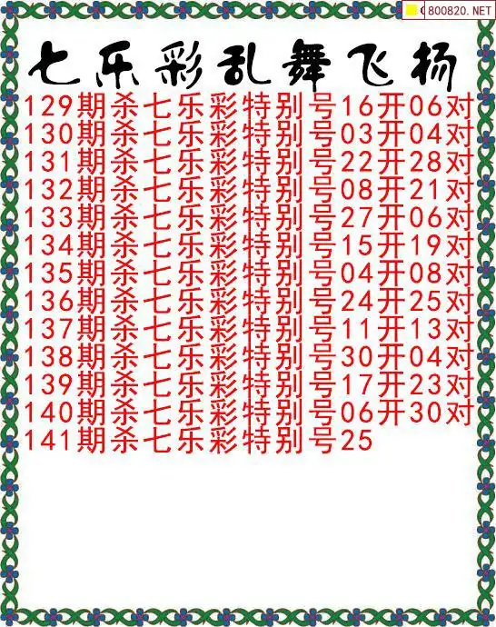 首页〉 七乐彩杀号 走势图 七乐彩预测七乐彩杀号七乐彩技巧天齐图库走势图工具试机号 七乐彩25年141期乱舞飞扬特别号杀码图迷 发布时间:2025-12-09 08:27 走势图:七乐彩基本走势图七乐彩期尾走势图 推荐:宝彩APP 免费方案 智能荐号 热点导航 公告: 天齐新版APP<中大多>上线,点击领鲜 最新文章 中大多 七乐彩第2025141全部精准一注已公开 七乐彩第2025141三胆连中19期√√√ 2025140期彩宝贝七乐彩十大专家杀号定胆汇总 (四张)25140期澳客七乐彩专家杀号25140期彩经网七乐彩十大专家组选杀号黄忠2025140期七乐彩专家杀一码图七乐彩2025140期降龙罗汉杀号图2025年钟馗140期七乐彩杀特别号码图 更多七乐彩杀号 > 福彩3D 双色球 大乐透 排列三 更多> 3D胆码 3D预测 3D字谜 3D图谜 解太湖 3D条件 3D杀码 P3预测 P3图谜 P3字谜 P3条件 P3胆码 P3杀码 热点导航 天齐图库 走势图 工具图表 试机号 宝彩专家 智能荐号 菜单导航 关闭 福彩3D 3D专家 3D胆码 3D预测 3D字谜 3D图谜 解太湖 3D条件 3D杀码 3D技巧 3D走势图 体彩P3/P5 P3专家 P3预测 P3图谜 P3字谜 P3条件 P3胆码 P3杀码 P5预测 P3走势图 双色球 双色球专家 双色球预测 双色球杀号 双色球字图 双色球胆码 双色球走势 双色球技巧 大乐透 大乐透专家 大乐透预测 大乐透杀号 大乐透胆码 大乐透技巧 大乐透走势 天齐图库 七星彩 七星彩专家 七星彩预测 七星彩图谜 七星彩杀号 七星彩技巧 七星彩走势 天齐走势 七乐彩 七乐彩专家 七乐彩预测 七乐彩杀号 七乐彩技巧 七乐彩走势 热点导航 彩宝网 宝彩网 宝彩网 开奖公告 宝彩专家 牛票票