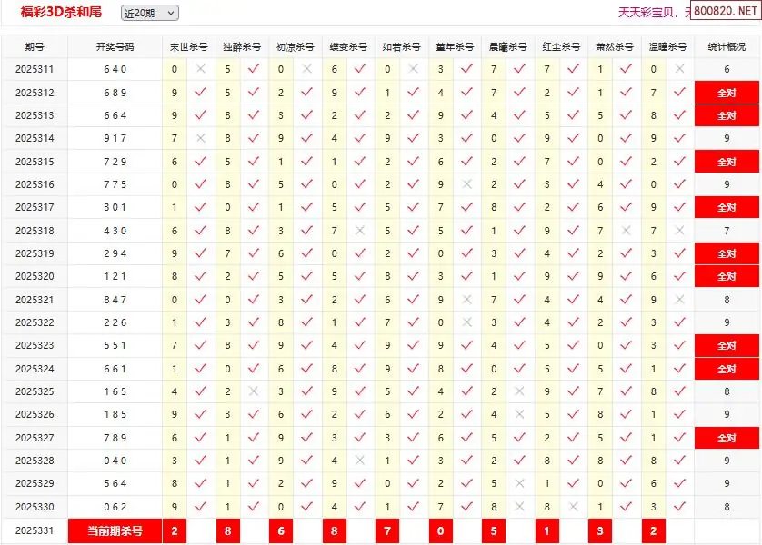 首页〉 3D条件 走势图 3D胆码3D预测3D图谜3D字谜解太湖3D技巧3D条件3D杀码天齐图库走势图工具试机号 25331期彩宝贝福彩3D杀和尾 专题:3d和尾十专家杀尾汇总 发布时间:2025-12-11 10:43 开奖:3D开奖结果3D近10期试机号 推荐:宝彩APP 免费方案 智能荐号 热点导航 公告: 天齐新版APP<中大多>上线,点击领鲜 最新文章 中大多 3D第2025331精准杀一码推荐 3D第20253313D全部料3注已更新 [交友]第2025331期3D本期单挑和差2025年福彩3D331期[天涯草]精选断组-原创2025年福彩3D331期[圆圆]杀二码组合-原创2025年福彩3D331期[神算胆王]绝杀和值-原创2025年福彩3D331期[仙子]杀跨度-原创2025年福彩3D331期[无殇]专业断组-原创 更多3D条件 > 福彩3D 双色球 大乐透 排列三 更多> 3D胆码 3D预测 3D字谜 3D图谜 解太湖 3D条件 3D杀码 P3预测 P3图谜 P3字谜 P3条件 P3胆码 P3杀码 热点导航 天齐图库 走势图 工具图表 试机号 宝彩专家 智能荐号 菜单导航 关闭 福彩3D 3D专家 3D胆码 3D预测 3D字谜 3D图谜 解太湖 3D条件 3D杀码 3D技巧 3D走势图 体彩P3/P5 P3专家 P3预测 P3图谜 P3字谜 P3条件 P3胆码 P3杀码 P5预测 P3走势图 双色球 双色球专家 双色球预测 双色球杀号 双色球字图 双色球胆码 双色球走势 双色球技巧 大乐透 大乐透专家 大乐透预测 大乐透杀号 大乐透胆码 大乐透技巧 大乐透走势 天齐图库 七星彩 七星彩专家 七星彩预测 七星彩图谜 七星彩杀号 七星彩技巧 七星彩走势 天齐走势 七乐彩 七乐彩专家 七乐彩预测 七乐彩杀号 七乐彩技巧 七乐彩走势 热点导航 彩宝网 宝彩网 宝彩网 开奖公告 宝彩专家 牛票票