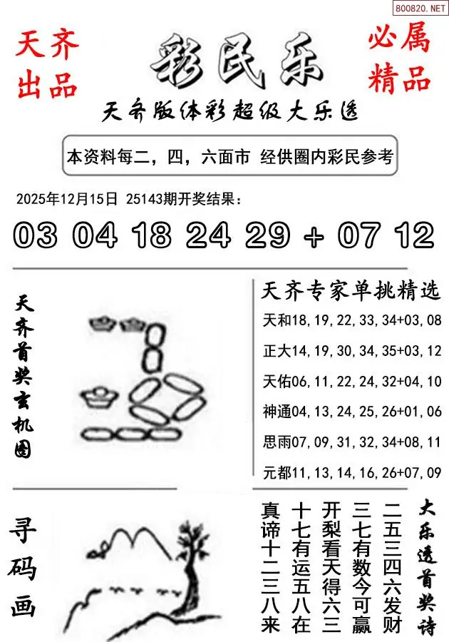 首页〉 大乐透预测 走势图 大乐透预测大乐透杀号大乐透胆码大乐透技巧天齐图库走势图工具试机号 25年144期天齐版大乐透彩民乐图谜 专题:大乐透彩民乐 发布时间:2025-12-15 21:46 走势图:大乐透综合走势图大乐透期尾走势图 推荐:宝彩APP 免费方案 智能荐号 热点导航 公告: 天齐新版APP<中大多>上线,点击领鲜 最新文章 中大多 大乐透第2025144双飞独胆免费领取 大乐透第2025144徐文轩3D直选 144期体彩大乐透历史同期对比图表+近期走势图分析大乐透历史上的今天144期大乐透25143期开奖结果 03 04 18 24 29 + 07 12大乐透第25143期[选胆高手]预测后区热号推荐大乐透第25143期[古蓝天者]高手预测定胆杀号大乐透第25143期[测胆王]推荐号绝密定胆 更多大乐透预测 > 福彩3D 双色球 大乐透 排列三 更多> 3D胆码 3D预测 3D字谜 3D图谜 解太湖 3D条件 3D杀码 P3预测 P3图谜 P3字谜 P3条件 P3胆码 P3杀码 热点导航 天齐图库 走势图 工具图表 试机号 宝彩专家 智能荐号 菜单导航 关闭 福彩3D 3D专家 3D胆码 3D预测 3D字谜 3D图谜 解太湖 3D条件 3D杀码 3D技巧 3D走势图 体彩P3/P5 P3专家 P3预测 P3图谜 P3字谜 P3条件 P3胆码 P3杀码 P5预测 P3走势图 双色球 双色球专家 双色球预测 双色球杀号 双色球字图 双色球胆码 双色球走势 双色球技巧 大乐透 大乐透专家 大乐透预测 大乐透杀号 大乐透胆码 大乐透技巧 大乐透走势 天齐图库 七星彩 七星彩专家 七星彩预测 七星彩图谜 七星彩杀号 七星彩技巧 七星彩走势 天齐走势 七乐彩 七乐彩专家 七乐彩预测 七乐彩杀号 七乐彩技巧 七乐彩走势 热点导航 彩宝网 宝彩网 宝彩网 开奖公告 宝彩专家 牛票票