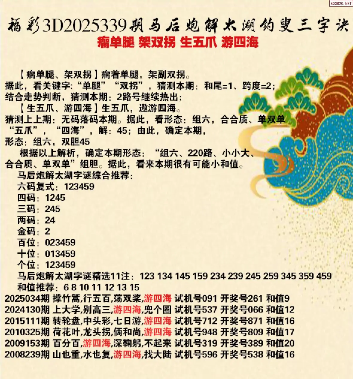 首页〉 解太湖 走势图 3D胆码3D预测3D图谜3D字谜解太湖3D技巧3D条件3D杀码天齐图库走势图工具试机号 25年339期马后炮解太湖字谜之-瘸单腿 架双拐 生五爪 游四海 专题:马后炮解太湖谜 发布时间:2025-12-18 20:37 开奖:3D开奖结果3D近10期试机号 推荐:宝彩APP 免费方案 智能荐号 热点导航 公告: 天齐新版APP<中大多>上线,点击领鲜 最新文章 中大多 3D第2025339真帝王宝图预测3D准 3D第2025339小蓝精灵独胆9中6 25年339期 3D专家解今日太湖字谜汇总(天齐网整理汇总)25339期3D丹东解太湖 天龙一语 布衣神算25年339期孔方来萃专解太湖钓叟三字诀25339期太湖字谜钓叟 - 瘸单腿 架双拐 生五爪 游四海天涯草解太湖25年339期太湖 生五爪福彩3D2025年338期[酒鬼]解谜太湖钓叟五十岁 更多解太湖 > 福彩3D 双色球 大乐透 排列三 更多> 3D胆码 3D预测 3D字谜 3D图谜 解太湖 3D条件 3D杀码 P3预测 P3图谜 P3字谜 P3条件 P3胆码 P3杀码 热点导航 天齐图库 走势图 工具图表 试机号 宝彩专家 智能荐号 菜单导航 关闭 福彩3D 3D专家 3D胆码 3D预测 3D字谜 3D图谜 解太湖 3D条件 3D杀码 3D技巧 3D走势图 体彩P3/P5 P3专家 P3预测 P3图谜 P3字谜 P3条件 P3胆码 P3杀码 P5预测 P3走势图 双色球 双色球专家 双色球预测 双色球杀号 双色球字图 双色球胆码 双色球走势 双色球技巧 大乐透 大乐透专家 大乐透预测 大乐透杀号 大乐透胆码 大乐透技巧 大乐透走势 天齐图库 七星彩 七星彩专家 七星彩预测 七星彩图谜 七星彩杀号 七星彩技巧 七星彩走势 天齐走势 七乐彩 七乐彩专家 七乐彩预测 七乐彩杀号 七乐彩技巧 七乐彩走势 热点导航 彩宝网 宝彩网 宝彩网 开奖公告 宝彩专家 牛票票
