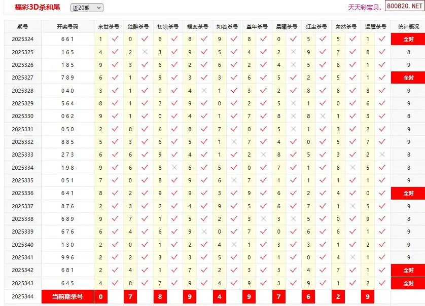 首页〉 3D条件 走势图 3D胆码3D预测3D图谜3D字谜解太湖3D技巧3D条件3D杀码天齐图库走势图工具试机号 25344期彩宝贝福彩3D杀和尾 专题:3d和尾十专家杀尾汇总 发布时间:2025-12-24 10:35 开奖:3D开奖结果3D近10期试机号 推荐:宝彩APP 免费方案 智能荐号 热点导航 公告: 天齐新版APP<中大多>上线,点击领鲜 最新文章 中大多 3D第2025344《红球双胆分析》 3D第2025344高手3码独胆精准 [交友]第2025344期3D本期单挑和差25344期[风吹四叶草]杀一和尾 14中1325344期[光明使者]3d专业杀6个组合 6中525344期[烟与巧克力]杀一跨 7连对25344期[行者优先]杀尾最准确 40中3825344期[越野之王]最准的定四 尾 3中2 更多3D条件 > 福彩3D 双色球 大乐透 排列三 更多> 3D胆码 3D预测 3D字谜 3D图谜 解太湖 3D条件 3D杀码 P3预测 P3图谜 P3字谜 P3条件 P3胆码 P3杀码 热点导航 天齐图库 走势图 工具图表 试机号 宝彩专家 智能荐号 菜单导航 关闭 福彩3D 3D专家 3D胆码 3D预测 3D字谜 3D图谜 解太湖 3D条件 3D杀码 3D技巧 3D走势图 体彩P3/P5 P3专家 P3预测 P3图谜 P3字谜 P3条件 P3胆码 P3杀码 P5预测 P3走势图 双色球 双色球专家 双色球预测 双色球杀号 双色球字图 双色球胆码 双色球走势 双色球技巧 大乐透 大乐透专家 大乐透预测 大乐透杀号 大乐透胆码 大乐透技巧 大乐透走势 天齐图库 七星彩 七星彩专家 七星彩预测 七星彩图谜 七星彩杀号 七星彩技巧 七星彩走势 天齐走势 七乐彩 七乐彩专家 七乐彩预测 七乐彩杀号 七乐彩技巧 七乐彩走势 热点导航 彩宝网 宝彩网 宝彩网 开奖公告 宝彩专家 牛票票