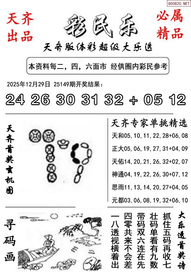首页〉 大乐透预测 走势图 大乐透预测大乐透杀号大乐透胆码大乐透技巧天齐图库走势图工具试机号 25年150期天齐版大乐透彩民乐图谜 专题:大乐透彩民乐 发布时间:2025-12-29 21:46 走势图:大乐透综合走势图大乐透期尾走势图 推荐:宝彩APP 免费方案 智能荐号 热点导航 公告: 天齐新版APP<中大多>上线,点击领鲜 最新文章 中大多 大乐透第2025150全部定位10中8 大乐透第2025150徐文选3D直选已更新 25年150期天齐版大乐透彩民乐图谜150期体彩大乐透历史同期对比图表+近期走势图分析大乐透历史上的今天150期大乐透第25149期[智者谋奖]推荐今日前后胆码杀码大乐透第25149期[选胆高手]预测后区热号推荐大乐透第25149期[古蓝天者]高手预测定胆杀号 更多大乐透预测 > 福彩3D 双色球 大乐透 排列三 更多> 3D胆码 3D预测 3D字谜 3D图谜 解太湖 3D条件 3D杀码 P3预测 P3图谜 P3字谜 P3条件 P3胆码 P3杀码 热点导航 天齐图库 走势图 工具图表 试机号 宝彩专家 智能荐号 菜单导航 关闭 福彩3D 3D专家 3D胆码 3D预测 3D字谜 3D图谜 解太湖 3D条件 3D杀码 3D技巧 3D走势图 体彩P3/P5 P3专家 P3预测 P3图谜 P3字谜 P3条件 P3胆码 P3杀码 P5预测 P3走势图 双色球 双色球专家 双色球预测 双色球杀号 双色球字图 双色球胆码 双色球走势 双色球技巧 大乐透 大乐透专家 大乐透预测 大乐透杀号 大乐透胆码 大乐透技巧 大乐透走势 天齐图库 七星彩 七星彩专家 七星彩预测 七星彩图谜 七星彩杀号 七星彩技巧 七星彩走势 天齐走势 七乐彩 七乐彩专家 七乐彩预测 七乐彩杀号 七乐彩技巧 七乐彩走势 热点导航 彩宝网 宝彩网 宝彩网 开奖公告 宝彩专家 牛票票