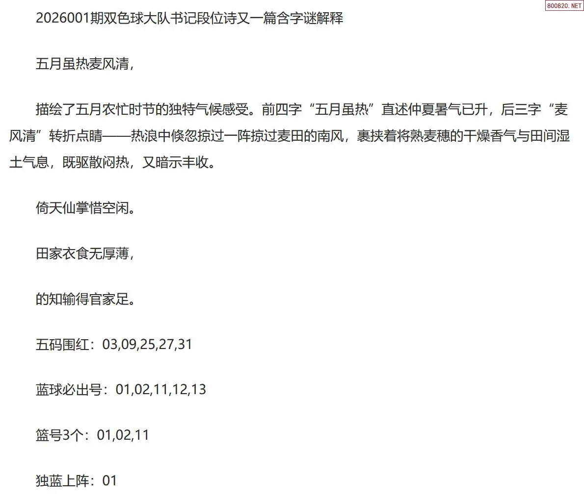 首页〉 双色球字图 走势图 双色球预测双色球杀号双色球技巧双色球字图双色球条件双色球胆码天齐图库走势图工具试机号 双色球第26001期大队书记最新段位诗谜又一篇 专题:大队书记 发布时间:2025-12-30 21:01 工具:双色球胆拖组号双色球缩水过滤 推荐:宝彩APP 免费方案 智能荐号 热点导航 公告: 天齐新版APP<中大多>上线,点击领鲜 最新文章 中大多 双色球第2026001徐文轩分析独胆定蓝 双色球第2026001直选5码(限10名) 藏机图2026001期天齐原创双色球藏机图迷2025001期天齐网今晚双色球字谜总汇双色球26001期图迷画迷汇总(天齐整理)26年001期大胜寨双色球中奖真言双色球26年001期天吉龙头凤尾鸟语断蓝图双色球26001期牛彩字谜诗迷汇总(天齐整理) 更多双色球字图 > 福彩3D 双色球 大乐透 排列三 更多> 3D胆码 3D预测 3D字谜 3D图谜 解太湖 3D条件 3D杀码 P3预测 P3图谜 P3字谜 P3条件 P3胆码 P3杀码 热点导航 天齐图库 走势图 工具图表 试机号 宝彩专家 智能荐号 菜单导航 关闭 福彩3D 3D专家 3D胆码 3D预测 3D字谜 3D图谜 解太湖 3D条件 3D杀码 3D技巧 3D走势图 体彩P3/P5 P3专家 P3预测 P3图谜 P3字谜 P3条件 P3胆码 P3杀码 P5预测 P3走势图 双色球 双色球专家 双色球预测 双色球杀号 双色球字图 双色球胆码 双色球走势 双色球技巧 大乐透 大乐透专家 大乐透预测 大乐透杀号 大乐透胆码 大乐透技巧 大乐透走势 天齐图库 七星彩 七星彩专家 七星彩预测 七星彩图谜 七星彩杀号 七星彩技巧 七星彩走势 天齐走势 七乐彩 七乐彩专家 七乐彩预测 七乐彩杀号 七乐彩技巧 七乐彩走势 热点导航 彩宝网 宝彩网 宝彩网 开奖公告 宝彩专家 牛票票