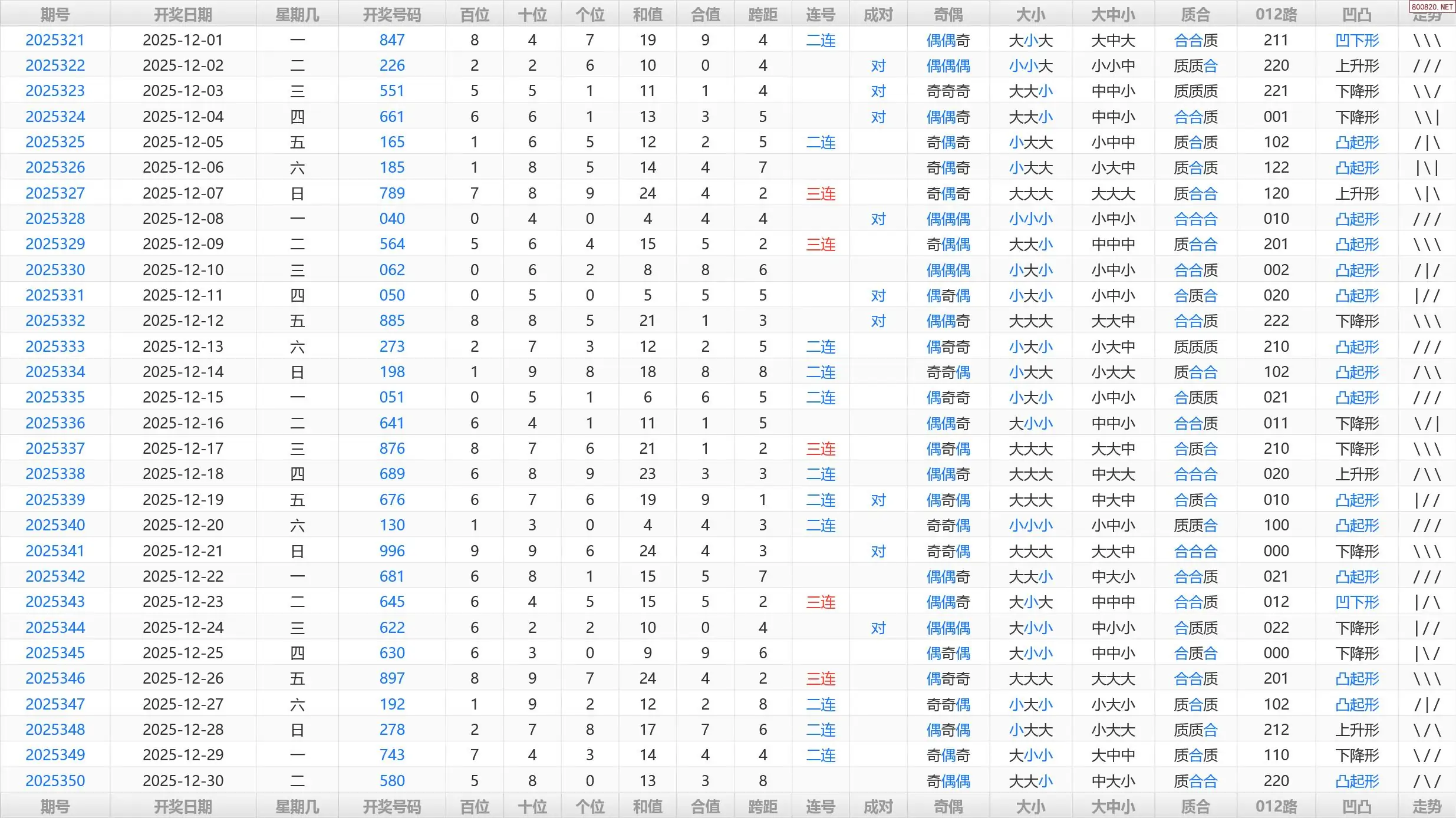 首页〉 3D预测 走势图 3D胆码3D预测3D图谜3D字谜解太湖3D技巧3D条件3D杀码天齐图库走势图工具试机号 351期福彩3D历史开奖号码统计表 发布时间:2025-12-30 21:41 开奖:3D开奖结果3D近10期试机号 推荐:宝彩APP 免费方案 智能荐号 热点导航 公告: 天齐新版APP<中大多>上线,点击领鲜 最新文章 中大多 3D第2025351真帝王宝图预测3D准 3D第2025351免费独胆连中五码 25351期3D于海滨点评+专家一语定胆《保真》25年351期福彩3d校验码20625年351期孟庆会点评+专家一语定胆《保真》25年351期福彩3D模拟开奖号码+详细分析25年351期天齐收集彩吧论坛福彩3D原创预测汇总25年351期天齐福彩3D专家预测分析总汇[晚间版] 更多3D预测 > 福彩3D 双色球 大乐透 排列三 更多> 3D胆码 3D预测 3D字谜 3D图谜 解太湖 3D条件 3D杀码 P3预测 P3图谜 P3字谜 P3条件 P3胆码 P3杀码 热点导航 天齐图库 走势图 工具图表 试机号 宝彩专家 智能荐号 菜单导航 关闭 福彩3D 3D专家 3D胆码 3D预测 3D字谜 3D图谜 解太湖 3D条件 3D杀码 3D技巧 3D走势图 体彩P3/P5 P3专家 P3预测 P3图谜 P3字谜 P3条件 P3胆码 P3杀码 P5预测 P3走势图 双色球 双色球专家 双色球预测 双色球杀号 双色球字图 双色球胆码 双色球走势 双色球技巧 大乐透 大乐透专家 大乐透预测 大乐透杀号 大乐透胆码 大乐透技巧 大乐透走势 天齐图库 七星彩 七星彩专家 七星彩预测 七星彩图谜 七星彩杀号 七星彩技巧 七星彩走势 天齐走势 七乐彩 七乐彩专家 七乐彩预测 七乐彩杀号 七乐彩技巧 七乐彩走势 热点导航 彩宝网 宝彩网 宝彩网 开奖公告 宝彩专家 牛票票