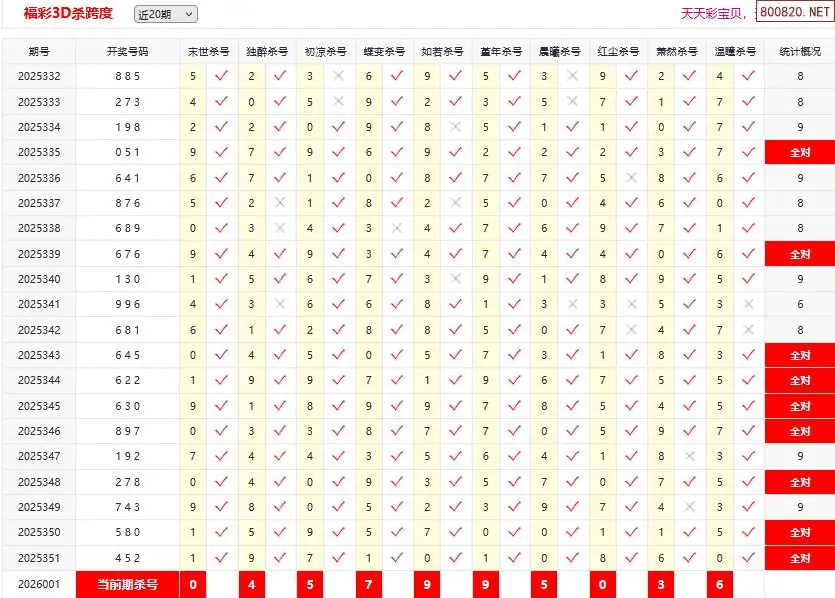 首页〉 3D条件 走势图 3D胆码3D预测3D图谜3D字谜解太湖3D技巧3D条件3D杀码天齐图库走势图工具试机号 26001期彩宝贝福彩3D杀跨度 专题:3d跨度专家杀跨汇总 发布时间:2026-01-01 10:29 开奖:3D开奖结果3D近10期试机号 推荐:宝彩APP 免费方案 智能荐号 热点导航 公告: 天齐新版APP<中大多>上线,点击领鲜 最新文章 中大多 3D第2026001今日一注直选免费试 3D第2026001钱王预测金胆 [交友]第2026001期3D本期单挑和差2026年福彩3D001期[天涯草]精选断组-原创2026年福彩3D001期[圆圆]杀二码组合-原创2026年福彩3D001期[神算胆王]绝杀和值-原创2026年福彩3D001期[仙子]杀跨度-原创2026年福彩3D001期[无殇]专业断组-原创 更多3D条件 > 福彩3D 双色球 大乐透 排列三 更多> 3D胆码 3D预测 3D字谜 3D图谜 解太湖 3D条件 3D杀码 P3预测 P3图谜 P3字谜 P3条件 P3胆码 P3杀码 热点导航 天齐图库 走势图 工具图表 试机号 宝彩专家 智能荐号 菜单导航 关闭 福彩3D 3D专家 3D胆码 3D预测 3D字谜 3D图谜 解太湖 3D条件 3D杀码 3D技巧 3D走势图 体彩P3/P5 P3专家 P3预测 P3图谜 P3字谜 P3条件 P3胆码 P3杀码 P5预测 P3走势图 双色球 双色球专家 双色球预测 双色球杀号 双色球字图 双色球胆码 双色球走势 双色球技巧 大乐透 大乐透专家 大乐透预测 大乐透杀号 大乐透胆码 大乐透技巧 大乐透走势 天齐图库 七星彩 七星彩专家 七星彩预测 七星彩图谜 七星彩杀号 七星彩技巧 七星彩走势 天齐走势 七乐彩 七乐彩专家 七乐彩预测 七乐彩杀号 七乐彩技巧 七乐彩走势 热点导航 彩宝网 宝彩网 宝彩网 开奖公告 宝彩专家 牛票票