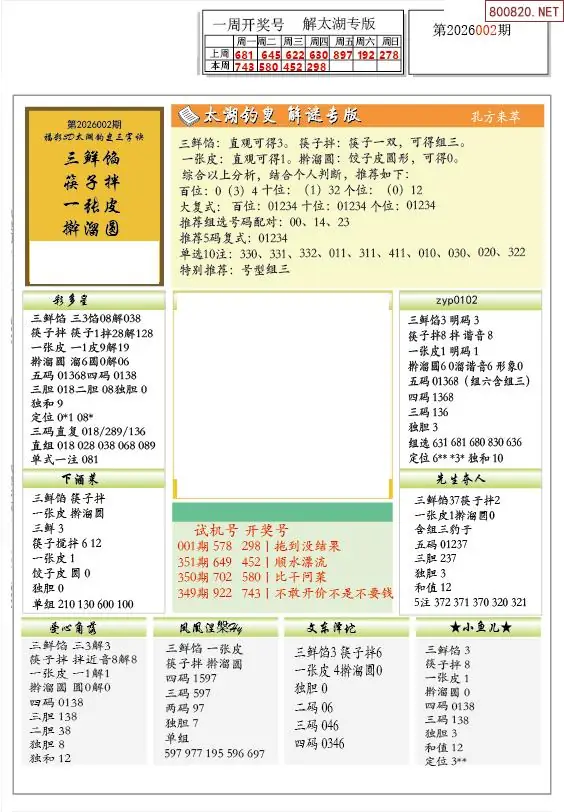 首页〉 3D图谜 走势图 3D胆码3D预测3D图谜3D字谜解太湖3D技巧3D条件3D杀码天齐图库走势图工具试机号 26年002期解太湖3d字图迷汇总彩报 专题:图谜总汇 发布时间:2026-01-02 08:49 开奖:3D开奖结果3D近10期试机号 推荐:宝彩APP 免费方案 智能荐号 热点导航 公告: 天齐新版APP<中大多>上线,点击领鲜 最新文章 中大多 3D第2026002组选形态(限10名) 3D第2026002独胆*双飞*三码 2026年002期3D图谜汇总(九)2026年002期3D图谜汇总(八)2026年002期3D图谜汇总(七)2026年002期3d图迷汇总(六)2026年002期3d图谜汇总(五)2026年002期3D图迷汇总(四) 更多3D图谜 > 福彩3D 双色球 大乐透 排列三 更多> 3D胆码 3D预测 3D字谜 3D图谜 解太湖 3D条件 3D杀码 P3预测 P3图谜 P3字谜 P3条件 P3胆码 P3杀码 热点导航 天齐图库 走势图 工具图表 试机号 宝彩专家 智能荐号 菜单导航 关闭 福彩3D 3D专家 3D胆码 3D预测 3D字谜 3D图谜 解太湖 3D条件 3D杀码 3D技巧 3D走势图 体彩P3/P5 P3专家 P3预测 P3图谜 P3字谜 P3条件 P3胆码 P3杀码 P5预测 P3走势图 双色球 双色球专家 双色球预测 双色球杀号 双色球字图 双色球胆码 双色球走势 双色球技巧 大乐透 大乐透专家 大乐透预测 大乐透杀号 大乐透胆码 大乐透技巧 大乐透走势 天齐图库 七星彩 七星彩专家 七星彩预测 七星彩图谜 七星彩杀号 七星彩技巧 七星彩走势 天齐走势 七乐彩 七乐彩专家 七乐彩预测 七乐彩杀号 七乐彩技巧 七乐彩走势 热点导航 彩宝网 宝彩网 宝彩网 开奖公告 宝彩专家 牛票票