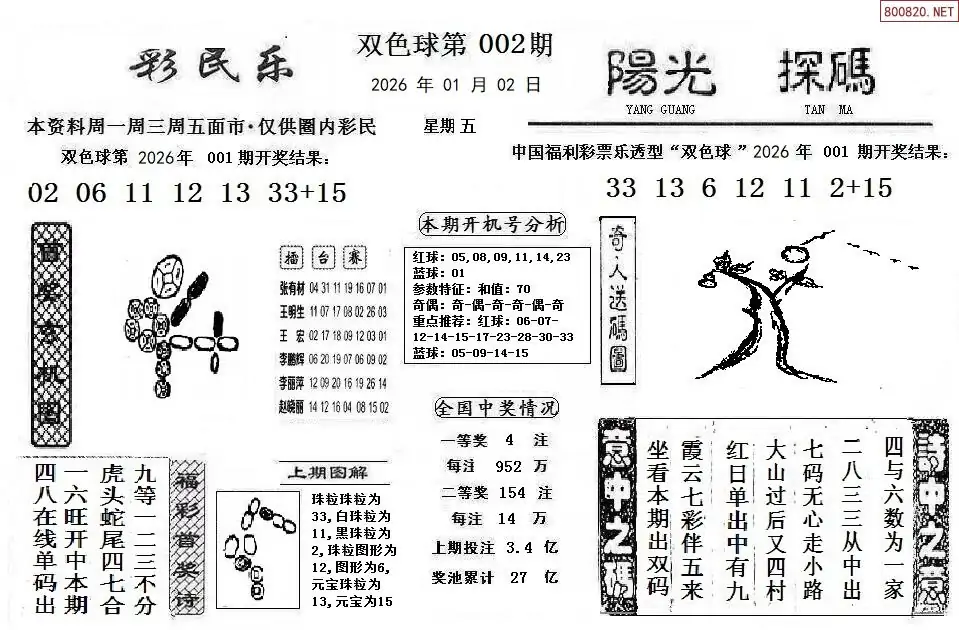 首页〉 双色球字图 走势图 双色球预测双色球杀号双色球技巧双色球字图双色球条件双色球胆码天齐图库走势图工具试机号 双色球26年002期阳光探码+彩民乐图谜 专题:彩民乐阳光探码 发布时间:2026-01-02 17:11 工具:双色球胆拖组号双色球缩水过滤 推荐:宝彩APP 免费方案 智能荐号 热点导航 公告: 天齐新版APP<中大多>上线,点击领鲜 最新文章 中大多 双色球第2026002免费独胆连中五码 双色球第2026002于海滨3D直选免费领 双色球26年002期阳光探码+彩民乐图谜26年002期双色球联销图(网络版)26年002期天齐网今晚双色球图谜总汇藏机图2026002期天齐原创双色球藏机图迷2025002期天齐网今晚双色球字谜总汇双色球26002期图迷画迷汇总(天齐整理) 更多双色球字图 > 福彩3D 双色球 大乐透 排列三 更多> 3D胆码 3D预测 3D字谜 3D图谜 解太湖 3D条件 3D杀码 P3预测 P3图谜 P3字谜 P3条件 P3胆码 P3杀码 热点导航 天齐图库 走势图 工具图表 试机号 宝彩专家 智能荐号 菜单导航 关闭 福彩3D 3D专家 3D胆码 3D预测 3D字谜 3D图谜 解太湖 3D条件 3D杀码 3D技巧 3D走势图 体彩P3/P5 P3专家 P3预测 P3图谜 P3字谜 P3条件 P3胆码 P3杀码 P5预测 P3走势图 双色球 双色球专家 双色球预测 双色球杀号 双色球字图 双色球胆码 双色球走势 双色球技巧 大乐透 大乐透专家 大乐透预测 大乐透杀号 大乐透胆码 大乐透技巧 大乐透走势 天齐图库 七星彩 七星彩专家 七星彩预测 七星彩图谜 七星彩杀号 七星彩技巧 七星彩走势 天齐走势 七乐彩 七乐彩专家 七乐彩预测 七乐彩杀号 七乐彩技巧 七乐彩走势 热点导航 彩宝网 宝彩网 宝彩网 开奖公告 宝彩专家 牛票票