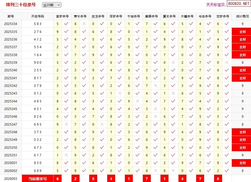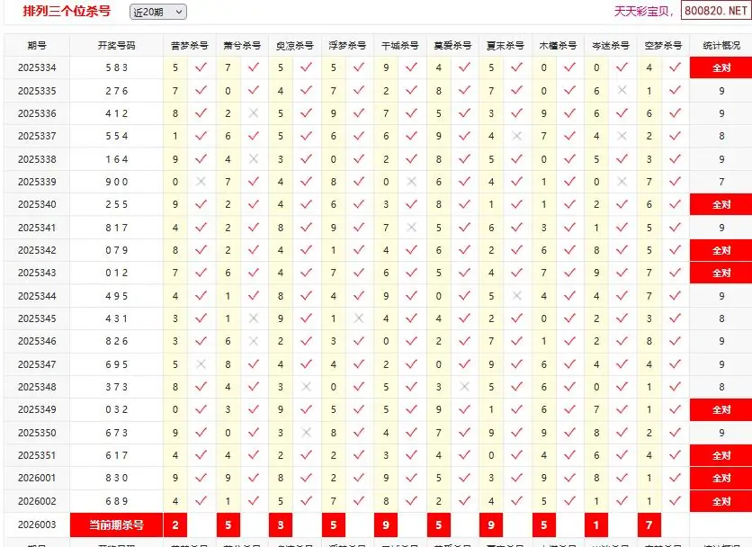 首页〉 P3杀码 走势图 P3预测P3图谜P3字谜P3技巧P3条件P3胆码P3杀码P5预测天齐图库走势图工具试机号 体彩p326003期彩宝贝十大专家排三定位杀码 专题:p3十大专家杀号 发布时间:2026-01-03 06:19 工具:P3过滤缩水P3试机号走势图 推荐:宝彩APP 免费方案 智能荐号 热点导航 公告: 天齐新版APP<中大多>上线,点击领鲜 最新文章 中大多 排列三第2026003小蓝精灵独胆9中6 排列三第2026003免费试料⑧中3 澳客彩票26年体彩P3003期十大大专家杀号体彩P326年003期彩经彩票十大专家杀号体彩p326003期彩宝贝十大专家排三组选杀号体彩p326003期彩宝贝十大专家排三定位杀码[倪匡]体彩P3本期杀三码26年003期 2错1[许仲琳]体彩p3杀双胆26年003期 2错0 更多P3杀码 > 福彩3D 双色球 大乐透 排列三 更多> 3D胆码 3D预测 3D字谜 3D图谜 解太湖 3D条件 3D杀码 P3预测 P3图谜 P3字谜 P3条件 P3胆码 P3杀码 热点导航 天齐图库 走势图 工具图表 试机号 宝彩专家 智能荐号 菜单导航 关闭 福彩3D 3D专家 3D胆码 3D预测 3D字谜 3D图谜 解太湖 3D条件 3D杀码 3D技巧 3D走势图 体彩P3/P5 P3专家 P3预测 P3图谜 P3字谜 P3条件 P3胆码 P3杀码 P5预测 P3走势图 双色球 双色球专家 双色球预测 双色球杀号 双色球字图 双色球胆码 双色球走势 双色球技巧 大乐透 大乐透专家 大乐透预测 大乐透杀号 大乐透胆码 大乐透技巧 大乐透走势 天齐图库 七星彩 七星彩专家 七星彩预测 七星彩图谜 七星彩杀号 七星彩技巧 七星彩走势 天齐走势 七乐彩 七乐彩专家 七乐彩预测 七乐彩杀号 七乐彩技巧 七乐彩走势 热点导航 彩宝网 宝彩网 宝彩网 开奖公告 宝彩专家 牛票票