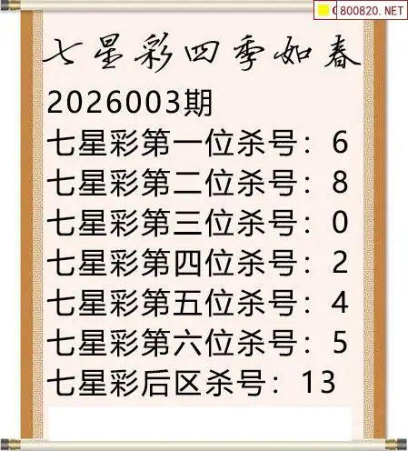 首页〉 七星彩图谜 走势图 七星彩预测七星彩图谜七星彩杀号七星彩技巧天齐图库走势图工具试机号 七星彩26年第003期四季如春定位杀码图迷 发布时间:2026-01-05 09:29 走势图:七星彩基本走势图七星彩期尾走势图 推荐:宝彩APP 免费方案 智能荐号 热点导航 公告: 天齐新版APP<中大多>上线,点击领鲜 最新文章 中大多 七星彩第2026004免费领取三注直选 七星彩第2026004卜算子奇偶分析 2026年004期龟丞相七星彩三码预测图豆豆先生2026004期七星彩三胆推荐图2026年老酒鬼004期七星彩胆码推测图百万雄师26年004期七星彩杀号图谜七星彩2026004期燕赤霞不定位杀码图毒霸26年004期七星彩杀号图谜 更多七星彩图谜 > 福彩3D 双色球 大乐透 排列三 更多> 3D胆码 3D预测 3D字谜 3D图谜 解太湖 3D条件 3D杀码 P3预测 P3图谜 P3字谜 P3条件 P3胆码 P3杀码 热点导航 天齐图库 走势图 工具图表 试机号 宝彩专家 智能荐号 菜单导航 关闭 福彩3D 3D专家 3D胆码 3D预测 3D字谜 3D图谜 解太湖 3D条件 3D杀码 3D技巧 3D走势图 体彩P3/P5 P3专家 P3预测 P3图谜 P3字谜 P3条件 P3胆码 P3杀码 P5预测 P3走势图 双色球 双色球专家 双色球预测 双色球杀号 双色球字图 双色球胆码 双色球走势 双色球技巧 大乐透 大乐透专家 大乐透预测 大乐透杀号 大乐透胆码 大乐透技巧 大乐透走势 天齐图库 七星彩 七星彩专家 七星彩预测 七星彩图谜 七星彩杀号 七星彩技巧 七星彩走势 天齐走势 七乐彩 七乐彩专家 七乐彩预测 七乐彩杀号 七乐彩技巧 七乐彩走势 热点导航 彩宝网 宝彩网 宝彩网 开奖公告 宝彩专家 牛票票
