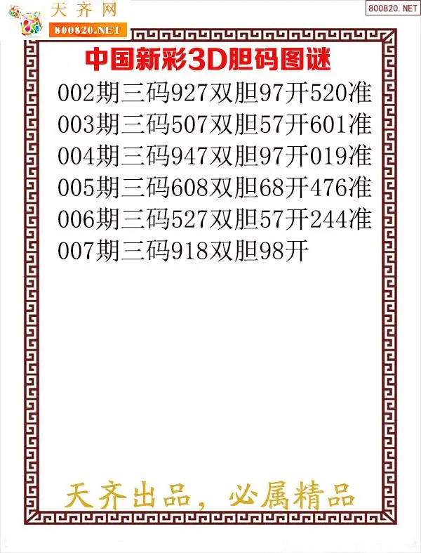 首页〉 3D图谜 走势图 3D胆码3D预测3D图谜3D字谜解太湖3D技巧3D条件3D杀码天齐图库走势图工具试机号 2026007期新彩福彩3d图谜-天齐原创发布 专题:胆码图汇总 发布时间:2026-01-06 22:08 开奖:3D开奖结果3D近10期试机号 推荐:宝彩APP 免费方案 智能荐号 热点导航 公告: 天齐新版APP<中大多>上线,点击领鲜 最新文章 中大多 3D第2026009全部定位10中8 3D第2026009小蓝精灵独胆9中6 2026年009期精华布衣3D全图26年009期解太湖3d字图迷汇总彩报2026年009期3D图谜汇总(九)2026年009期3D图谜汇总(八)2026年009期3D图谜汇总(七)2026年009期3d图迷汇总(六) 更多3D图谜 > 福彩3D 双色球 大乐透 排列三 更多> 3D胆码 3D预测 3D字谜 3D图谜 解太湖 3D条件 3D杀码 P3预测 P3图谜 P3字谜 P3条件 P3胆码 P3杀码 热点导航 天齐图库 走势图 工具图表 试机号 宝彩专家 智能荐号 菜单导航 关闭 福彩3D 3D专家 3D胆码 3D预测 3D字谜 3D图谜 解太湖 3D条件 3D杀码 3D技巧 3D走势图 体彩P3/P5 P3专家 P3预测 P3图谜 P3字谜 P3条件 P3胆码 P3杀码 P5预测 P3走势图 双色球 双色球专家 双色球预测 双色球杀号 双色球字图 双色球胆码 双色球走势 双色球技巧 大乐透 大乐透专家 大乐透预测 大乐透杀号 大乐透胆码 大乐透技巧 大乐透走势 天齐图库 七星彩 七星彩专家 七星彩预测 七星彩图谜 七星彩杀号 七星彩技巧 七星彩走势 天齐走势 七乐彩 七乐彩专家 七乐彩预测 七乐彩杀号 七乐彩技巧 七乐彩走势 热点导航 彩宝网 宝彩网 宝彩网 开奖公告 宝彩专家 牛票票