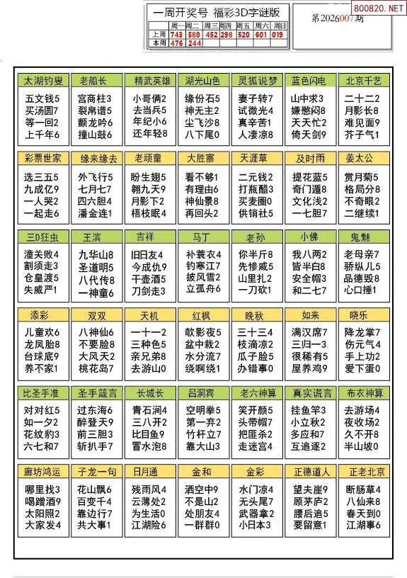 首页〉 3D图谜 走势图 3D胆码3D预测3D图谜3D字谜解太湖3D技巧3D条件3D杀码天齐图库走势图工具试机号 26年007期解太湖3d字图迷汇总彩报 专题:图谜总汇 发布时间:2026-01-07 08:24 开奖:3D开奖结果3D近10期试机号 推荐:宝彩APP 免费方案 智能荐号 热点导航 公告: 天齐新版APP<中大多>上线,点击领鲜 最新文章 中大多 3D第2026008今期6+1高手 3D第20260083D六鬼5码复试5中4 26年007期解太湖3d字图迷汇总彩报2026年007期3D图谜汇总(九)2026年007期3D图谜汇总(八)2026年007期3D图谜汇总(七)2026年007期3d图迷汇总(六)2026年007期3d图谜汇总(五) 更多3D图谜 > 福彩3D 双色球 大乐透 排列三 更多> 3D胆码 3D预测 3D字谜 3D图谜 解太湖 3D条件 3D杀码 P3预测 P3图谜 P3字谜 P3条件 P3胆码 P3杀码 热点导航 天齐图库 走势图 工具图表 试机号 宝彩专家 智能荐号 菜单导航 关闭 福彩3D 3D专家 3D胆码 3D预测 3D字谜 3D图谜 解太湖 3D条件 3D杀码 3D技巧 3D走势图 体彩P3/P5 P3专家 P3预测 P3图谜 P3字谜 P3条件 P3胆码 P3杀码 P5预测 P3走势图 双色球 双色球专家 双色球预测 双色球杀号 双色球字图 双色球胆码 双色球走势 双色球技巧 大乐透 大乐透专家 大乐透预测 大乐透杀号 大乐透胆码 大乐透技巧 大乐透走势 天齐图库 七星彩 七星彩专家 七星彩预测 七星彩图谜 七星彩杀号 七星彩技巧 七星彩走势 天齐走势 七乐彩 七乐彩专家 七乐彩预测 七乐彩杀号 七乐彩技巧 七乐彩走势 热点导航 彩宝网 宝彩网 宝彩网 开奖公告 宝彩专家 牛票票