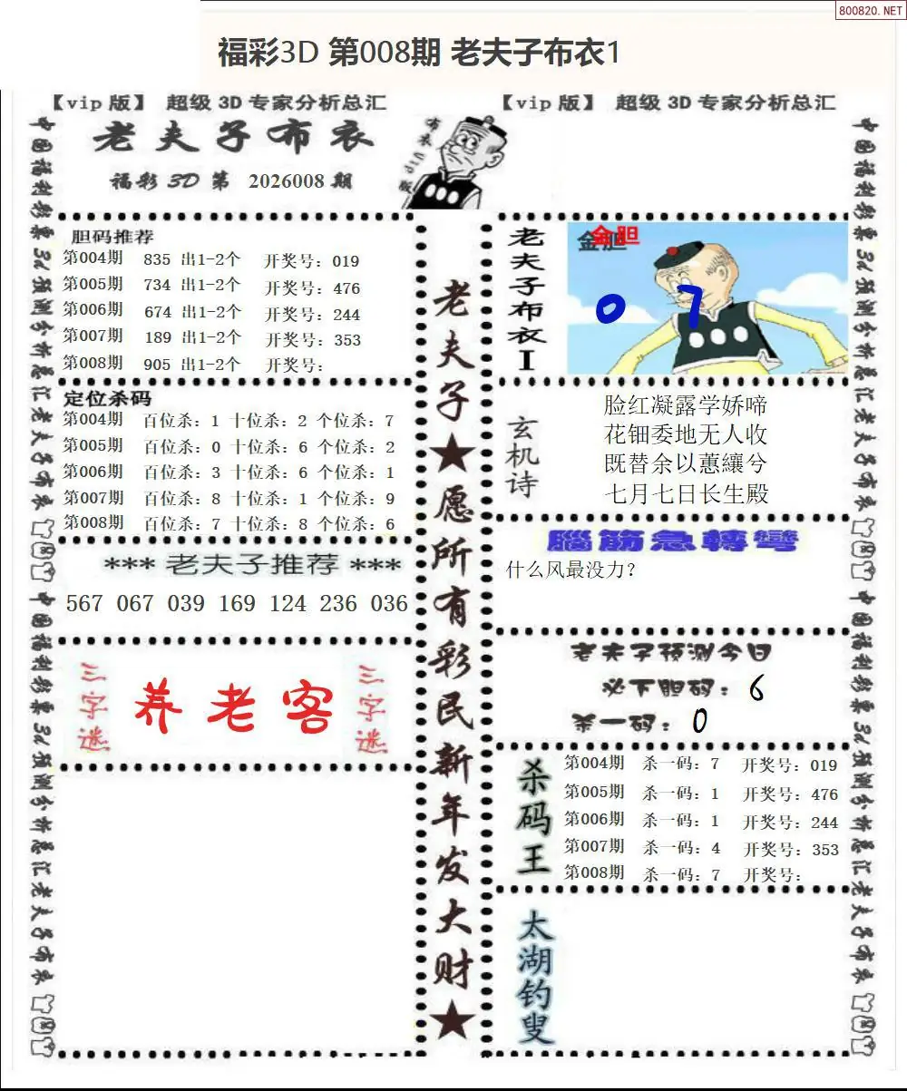 首页〉 3D图谜 走势图 3D胆码3D预测3D图谜3D字谜解太湖3D技巧3D条件3D杀码天齐图库走势图工具试机号 皇帝图26008期布衣皇帝+老夫子布衣3d图谜 专题:布衣皇帝图 发布时间:2026-01-07 22:16 开奖:3D开奖结果3D近10期试机号 推荐:宝彩APP 免费方案 智能荐号 热点导航 公告: 天齐新版APP<中大多>上线,点击领鲜 最新文章 中大多 3D第2026009免费独胆连中五码 3D第2026009徐文选3D直选已更新 2026年008期3D图谜汇总(九)2026年008期3D图谜汇总(八)2026年008期3D图谜汇总(七)2026年008期3d图迷汇总(六)2026年008期3d图谜汇总(五)2026年008期3D图迷汇总(四) 更多3D图谜 > 福彩3D 双色球 大乐透 排列三 更多> 3D胆码 3D预测 3D字谜 3D图谜 解太湖 3D条件 3D杀码 P3预测 P3图谜 P3字谜 P3条件 P3胆码 P3杀码 热点导航 天齐图库 走势图 工具图表 试机号 宝彩专家 智能荐号 菜单导航 关闭 福彩3D 3D专家 3D胆码 3D预测 3D字谜 3D图谜 解太湖 3D条件 3D杀码 3D技巧 3D走势图 体彩P3/P5 P3专家 P3预测 P3图谜 P3字谜 P3条件 P3胆码 P3杀码 P5预测 P3走势图 双色球 双色球专家 双色球预测 双色球杀号 双色球字图 双色球胆码 双色球走势 双色球技巧 大乐透 大乐透专家 大乐透预测 大乐透杀号 大乐透胆码 大乐透技巧 大乐透走势 天齐图库 七星彩 七星彩专家 七星彩预测 七星彩图谜 七星彩杀号 七星彩技巧 七星彩走势 天齐走势 七乐彩 七乐彩专家 七乐彩预测 七乐彩杀号 七乐彩技巧 七乐彩走势 热点导航 彩宝网 宝彩网 宝彩网 开奖公告 宝彩专家 牛票票