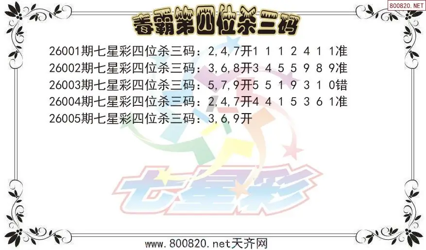 首页〉 七星彩图谜 走势图 七星彩预测七星彩图谜七星彩杀号七星彩技巧天齐图库走势图工具试机号 毒霸26年005期七星彩杀号图谜 发布时间:2026-01-10 09:04 走势图:七星彩基本走势图七星彩期尾走势图 推荐:宝彩APP 免费方案 智能荐号 热点导航 公告: 天齐新版APP<中大多>上线,点击领鲜 最新文章 中大多 七星彩第2026005免费独胆连中五码 七星彩第2026005徐文选3D直选已更新 2026年005期龟丞相七星彩三码预测图豆豆先生2026005期七星彩三胆推荐图2026年老酒鬼005期七星彩胆码推测图百万雄师26年005期七星彩杀号图谜七星彩2026005期燕赤霞不定位杀码图毒霸26年005期七星彩杀号图谜 更多七星彩图谜 > 福彩3D 双色球 大乐透 排列三 更多> 3D胆码 3D预测 3D字谜 3D图谜 解太湖 3D条件 3D杀码 P3预测 P3图谜 P3字谜 P3条件 P3胆码 P3杀码 热点导航 天齐图库 走势图 工具图表 试机号 宝彩专家 智能荐号 菜单导航 关闭 福彩3D 3D专家 3D胆码 3D预测 3D字谜 3D图谜 解太湖 3D条件 3D杀码 3D技巧 3D走势图 体彩P3/P5 P3专家 P3预测 P3图谜 P3字谜 P3条件 P3胆码 P3杀码 P5预测 P3走势图 双色球 双色球专家 双色球预测 双色球杀号 双色球字图 双色球胆码 双色球走势 双色球技巧 大乐透 大乐透专家 大乐透预测 大乐透杀号 大乐透胆码 大乐透技巧 大乐透走势 天齐图库 七星彩 七星彩专家 七星彩预测 七星彩图谜 七星彩杀号 七星彩技巧 七星彩走势 天齐走势 七乐彩 七乐彩专家 七乐彩预测 七乐彩杀号 七乐彩技巧 七乐彩走势 热点导航 彩宝网 宝彩网 宝彩网 开奖公告 宝彩专家 牛票票