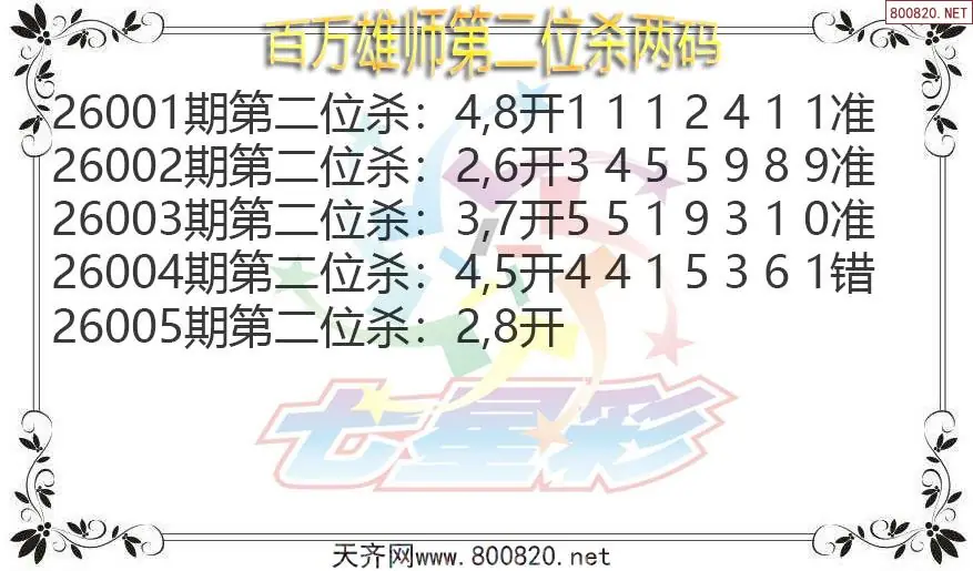 首页〉 七星彩图谜 走势图 七星彩预测七星彩图谜七星彩杀号七星彩技巧天齐图库走势图工具试机号 百万雄师26年005期七星彩杀号图谜 发布时间:2026-01-10 09:04 走势图:七星彩基本走势图七星彩期尾走势图 推荐:宝彩APP 免费方案 智能荐号 热点导航 公告: 天齐新版APP<中大多>上线,点击领鲜 最新文章 中大多 七星彩第2026005独胆*双飞*三码 七星彩第2026005于海滨一语定独胆准 七星彩2026005期燕赤霞不定位杀码图毒霸26年005期七星彩杀号图谜小尼姑玩彩26年005期七星彩后区胆码图谜太上道祖26年005期七星彩杀号图谜周伯通2026005期七星彩杀号推荐图华山神道26年005期七星彩杀号图谜 更多七星彩图谜 > 福彩3D 双色球 大乐透 排列三 更多> 3D胆码 3D预测 3D字谜 3D图谜 解太湖 3D条件 3D杀码 P3预测 P3图谜 P3字谜 P3条件 P3胆码 P3杀码 热点导航 天齐图库 走势图 工具图表 试机号 宝彩专家 智能荐号 菜单导航 关闭 福彩3D 3D专家 3D胆码 3D预测 3D字谜 3D图谜 解太湖 3D条件 3D杀码 3D技巧 3D走势图 体彩P3/P5 P3专家 P3预测 P3图谜 P3字谜 P3条件 P3胆码 P3杀码 P5预测 P3走势图 双色球 双色球专家 双色球预测 双色球杀号 双色球字图 双色球胆码 双色球走势 双色球技巧 大乐透 大乐透专家 大乐透预测 大乐透杀号 大乐透胆码 大乐透技巧 大乐透走势 天齐图库 七星彩 七星彩专家 七星彩预测 七星彩图谜 七星彩杀号 七星彩技巧 七星彩走势 天齐走势 七乐彩 七乐彩专家 七乐彩预测 七乐彩杀号 七乐彩技巧 七乐彩走势 热点导航 彩宝网 宝彩网 宝彩网 开奖公告 宝彩专家 牛票票