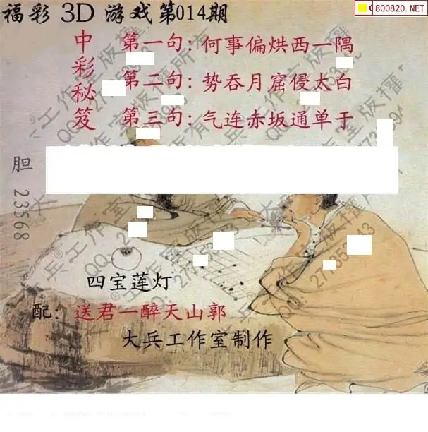 首页〉 3D图谜 走势图 3D胆码3D预测3D图谜3D字谜解太湖3D技巧3D条件3D杀码天齐图库走势图工具试机号 大兵图26014期万金报黄金报望月图谜 专题:大兵图 发布时间:2026-01-13 20:08 开奖:3D开奖结果3D近10期试机号 推荐:宝彩APP 免费方案 智能荐号 热点导航 公告: 天齐新版APP<中大多>上线,点击领鲜 最新文章 中大多 3D第2026014直选5码(限10名) 3D第2026014徐文轩3D直选 鬼魂图26014期一句中奖诗+鬼魂预测图迷三毛图26014期三码中奖图+三码绝密信封资料图鸿铄图26013期中国彩吧友情提供26014期5188福彩3D图谜白老图26014期八宝如来天庚图谜89彩图26014期观音赐码+无极救世福彩3D图迷 更多3D图谜 > 福彩3D 双色球 大乐透 排列三 更多> 3D胆码 3D预测 3D字谜 3D图谜 解太湖 3D条件 3D杀码 P3预测 P3图谜 P3字谜 P3条件 P3胆码 P3杀码 热点导航 天齐图库 走势图 工具图表 试机号 宝彩专家 智能荐号 菜单导航 关闭 福彩3D 3D专家 3D胆码 3D预测 3D字谜 3D图谜 解太湖 3D条件 3D杀码 3D技巧 3D走势图 体彩P3/P5 P3专家 P3预测 P3图谜 P3字谜 P3条件 P3胆码 P3杀码 P5预测 P3走势图 双色球 双色球专家 双色球预测 双色球杀号 双色球字图 双色球胆码 双色球走势 双色球技巧 大乐透 大乐透专家 大乐透预测 大乐透杀号 大乐透胆码 大乐透技巧 大乐透走势 天齐图库 七星彩 七星彩专家 七星彩预测 七星彩图谜 七星彩杀号 七星彩技巧 七星彩走势 天齐走势 七乐彩 七乐彩专家 七乐彩预测 七乐彩杀号 七乐彩技巧 七乐彩走势 热点导航 彩宝网 宝彩网 宝彩网 开奖公告 宝彩专家 牛票票