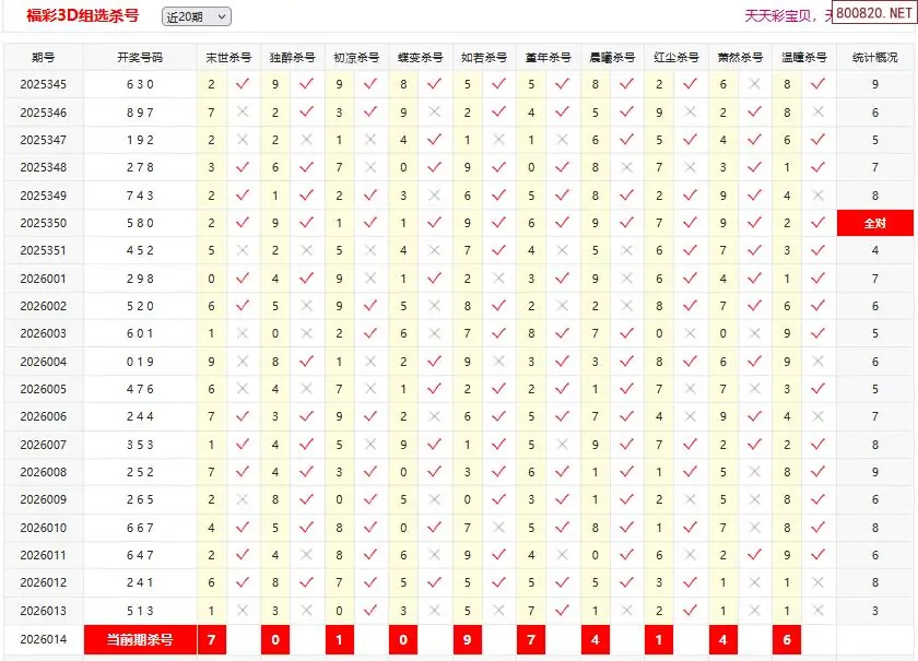 首页〉 3D杀码 走势图 3D胆码3D预测3D图谜3D字谜解太湖3D技巧3D条件3D杀码天齐图库走势图工具试机号 26014期彩宝贝福彩3D组选杀号 专题:3D杀码十专家 发布时间:2026-01-14 09:55 开奖:3D开奖结果3D近10期试机号 推荐:宝彩APP 免费方案 智能荐号 热点导航 公告: 天齐新版APP<中大多>上线,点击领鲜 最新文章 中大多 3D第2026014于海滨3D独胆 3D第2026014免费独胆连中五码 26年014期[浮梦一生]3d杀一胆 13错226年014期[醉相思]3d杀一码 13错326年014期[忆往昔]3d本期杀号 13错526年014期[顾棋]本期3d杀号 13错426年014期[孤影梵然]杀双胆 13错526年014期[流星风雨]3d杀一码 13错6 更多3D杀码 > 福彩3D 双色球 大乐透 排列三 更多> 3D胆码 3D预测 3D字谜 3D图谜 解太湖 3D条件 3D杀码 P3预测 P3图谜 P3字谜 P3条件 P3胆码 P3杀码 热点导航 天齐图库 走势图 工具图表 试机号 宝彩专家 智能荐号 菜单导航 关闭 福彩3D 3D专家 3D胆码 3D预测 3D字谜 3D图谜 解太湖 3D条件 3D杀码 3D技巧 3D走势图 体彩P3/P5 P3专家 P3预测 P3图谜 P3字谜 P3条件 P3胆码 P3杀码 P5预测 P3走势图 双色球 双色球专家 双色球预测 双色球杀号 双色球字图 双色球胆码 双色球走势 双色球技巧 大乐透 大乐透专家 大乐透预测 大乐透杀号 大乐透胆码 大乐透技巧 大乐透走势 天齐图库 七星彩 七星彩专家 七星彩预测 七星彩图谜 七星彩杀号 七星彩技巧 七星彩走势 天齐走势 七乐彩 七乐彩专家 七乐彩预测 七乐彩杀号 七乐彩技巧 七乐彩走势 热点导航 彩宝网 宝彩网 宝彩网 开奖公告 宝彩专家 牛票票