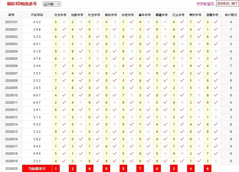 首页〉 3D杀码 走势图 3D胆码3D预测3D图谜3D字谜解太湖3D技巧3D条件3D杀码天齐图库走势图工具试机号 26020期彩宝贝福彩3D组选杀号 专题:3D杀码十专家 发布时间:2026-01-20 10:31 开奖:3D开奖结果3D近10期试机号 推荐:宝彩APP 免费方案 智能荐号 热点导航 公告: 天齐新版APP<中大多>上线,点击领鲜 最新文章 中大多 3D第2026020高手3码独胆精准 3D第2026020小蓝精灵独胆9中6 26020期彩宝贝福彩3D组选杀号26020期彩宝贝福彩3D百十个位杀号26年020期福彩3d彩经十大专家组选杀号26年020期福彩3d彩经十大专家直选杀号福彩3d26年020期澳客专家杀组选号码福彩3d26年020期澳客专家杀直选号码 更多3D杀码 > 福彩3D 双色球 大乐透 排列三 更多> 3D胆码 3D预测 3D字谜 3D图谜 解太湖 3D条件 3D杀码 P3预测 P3图谜 P3字谜 P3条件 P3胆码 P3杀码 热点导航 天齐图库 走势图 工具图表 试机号 宝彩专家 智能荐号 菜单导航 关闭 福彩3D 3D专家 3D胆码 3D预测 3D字谜 3D图谜 解太湖 3D条件 3D杀码 3D技巧 3D走势图 体彩P3/P5 P3专家 P3预测 P3图谜 P3字谜 P3条件 P3胆码 P3杀码 P5预测 P3走势图 双色球 双色球专家 双色球预测 双色球杀号 双色球字图 双色球胆码 双色球走势 双色球技巧 大乐透 大乐透专家 大乐透预测 大乐透杀号 大乐透胆码 大乐透技巧 大乐透走势 天齐图库 七星彩 七星彩专家 七星彩预测 七星彩图谜 七星彩杀号 七星彩技巧 七星彩走势 天齐走势 七乐彩 七乐彩专家 七乐彩预测 七乐彩杀号 七乐彩技巧 七乐彩走势 热点导航 彩宝网 宝彩网 宝彩网 开奖公告 宝彩专家 牛票票