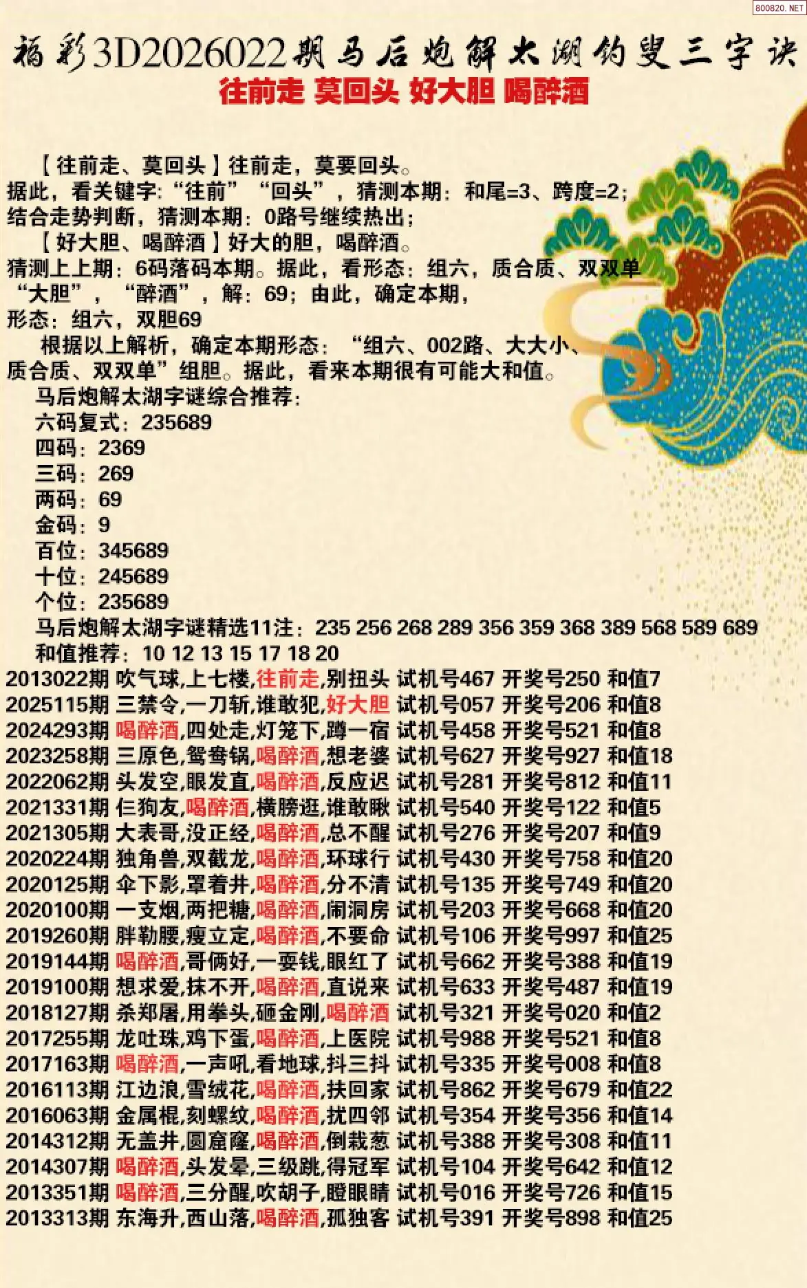 首页〉 解太湖 走势图 3D胆码3D预测3D图谜3D字谜解太湖3D技巧3D条件3D杀码天齐图库走势图工具试机号 26年022期马后炮解太湖字谜之-往前走 莫回头 好大胆 喝醉酒 专题:马后炮解太湖谜 发布时间:2026-01-21 20:39 开奖:3D开奖结果3D近10期试机号 推荐:宝彩APP 免费方案 智能荐号 热点导航 公告: 天齐新版APP<中大多>上线,点击领鲜 最新文章 中大多 3D第2026022免费领取三注直选 3D第2026022唐龙3D独胆8中7 26022期3D丹东解太湖 天龙一语 布衣神算26年022期孔方来萃专解太湖钓叟三字诀26022期太湖字谜钓叟 - 往前走 莫回头 好大胆 喝醉酒26年022期白鱼舟太湖钓叟三字诀解谜天涯草解太湖26年022期太湖 莫回头福彩3D2026年021期[白虎]解太湖谚语 我往东 更多解太湖 > 福彩3D 双色球 大乐透 排列三 更多> 3D胆码 3D预测 3D字谜 3D图谜 解太湖 3D条件 3D杀码 P3预测 P3图谜 P3字谜 P3条件 P3胆码 P3杀码 热点导航 天齐图库 走势图 工具图表 试机号 宝彩专家 智能荐号 菜单导航 关闭 福彩3D 3D专家 3D胆码 3D预测 3D字谜 3D图谜 解太湖 3D条件 3D杀码 3D技巧 3D走势图 体彩P3/P5 P3专家 P3预测 P3图谜 P3字谜 P3条件 P3胆码 P3杀码 P5预测 P3走势图 双色球 双色球专家 双色球预测 双色球杀号 双色球字图 双色球胆码 双色球走势 双色球技巧 大乐透 大乐透专家 大乐透预测 大乐透杀号 大乐透胆码 大乐透技巧 大乐透走势 天齐图库 七星彩 七星彩专家 七星彩预测 七星彩图谜 七星彩杀号 七星彩技巧 七星彩走势 天齐走势 七乐彩 七乐彩专家 七乐彩预测 七乐彩杀号 七乐彩技巧 七乐彩走势 热点导航 彩宝网 宝彩网 宝彩网 开奖公告 宝彩专家 牛票票