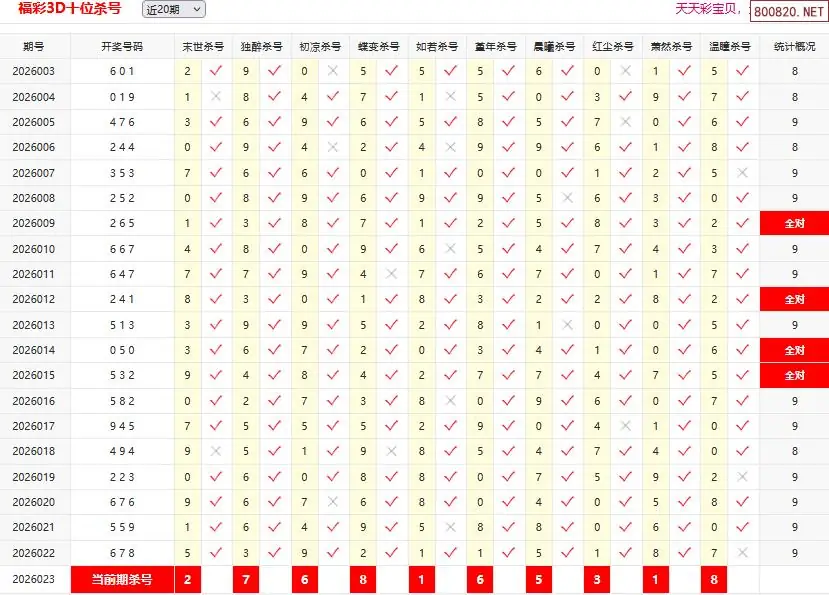 首页〉 3D杀码 走势图 3D胆码3D预测3D图谜3D字谜解太湖3D技巧3D条件3D杀码天齐图库走势图工具试机号 26023期彩宝贝福彩3D百十个位杀号 专题:3D杀码十专家 发布时间:2026-01-23 10:07 开奖:3D开奖结果3D近10期试机号 推荐:宝彩APP 免费方案 智能荐号 热点导航 公告: 天齐新版APP<中大多>上线,点击领鲜 最新文章 中大多 3D第2026023免费领取三注直选 3D第2026023徐文选3D/P3独胆已连准 26年023期[浮梦一生]3d杀一胆 22错426年023期[醉相思]3d杀一码 22错626年023期[忆往昔]3d本期杀号 22错826年023期[顾棋]本期3d杀号 22错826年023期[孤影梵然]杀双胆 22错1226年023期[流星风雨]3d杀一码 22错11 更多3D杀码 > 福彩3D 双色球 大乐透 排列三 更多> 3D胆码 3D预测 3D字谜 3D图谜 解太湖 3D条件 3D杀码 P3预测 P3图谜 P3字谜 P3条件 P3胆码 P3杀码 热点导航 天齐图库 走势图 工具图表 试机号 宝彩专家 智能荐号 菜单导航 关闭 福彩3D 3D专家 3D胆码 3D预测 3D字谜 3D图谜 解太湖 3D条件 3D杀码 3D技巧 3D走势图 体彩P3/P5 P3专家 P3预测 P3图谜 P3字谜 P3条件 P3胆码 P3杀码 P5预测 P3走势图 双色球 双色球专家 双色球预测 双色球杀号 双色球字图 双色球胆码 双色球走势 双色球技巧 大乐透 大乐透专家 大乐透预测 大乐透杀号 大乐透胆码 大乐透技巧 大乐透走势 天齐图库 七星彩 七星彩专家 七星彩预测 七星彩图谜 七星彩杀号 七星彩技巧 七星彩走势 天齐走势 七乐彩 七乐彩专家 七乐彩预测 七乐彩杀号 七乐彩技巧 七乐彩走势 热点导航 彩宝网 宝彩网 宝彩网 开奖公告 宝彩专家 牛票票