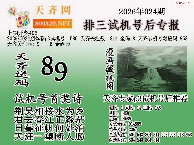 首页〉 P3图谜 走势图 P3预测P3图谜P3字谜P3技巧P3条件P3胆码P3杀码P5预测天齐图库走势图工具试机号 2026年024期体彩p3试机号后天齐网专报 发布时间:2026-01-24 17:18 工具:P3过滤缩水P3试机号走势图 推荐:宝彩APP 免费方案 智能荐号 热点导航 公告: 天齐新版APP<中大多>上线,点击领鲜 最新文章 中大多 排列三第20260243D六鬼5码复试5中4 排列三第2026024于海滨3D直选免费领 红黄蓝报26024期小黄报小蓝报26024期体彩P3杀码图迷汇总(天齐网整理)26024期体彩P3胆码图迷汇总(天齐网整理)26024期彩吧p3全图p3九宫图谜蜂巢图26024期迷宫寻胆+天机玄机P3图谜26024期天齐P3图谜总汇 更多P3图谜 > 福彩3D 双色球 大乐透 排列三 更多> 3D胆码 3D预测 3D字谜 3D图谜 解太湖 3D条件 3D杀码 P3预测 P3图谜 P3字谜 P3条件 P3胆码 P3杀码 热点导航 天齐图库 走势图 工具图表 试机号 宝彩专家 智能荐号 菜单导航 关闭 福彩3D 3D专家 3D胆码 3D预测 3D字谜 3D图谜 解太湖 3D条件 3D杀码 3D技巧 3D走势图 体彩P3/P5 P3专家 P3预测 P3图谜 P3字谜 P3条件 P3胆码 P3杀码 P5预测 P3走势图 双色球 双色球专家 双色球预测 双色球杀号 双色球字图 双色球胆码 双色球走势 双色球技巧 大乐透 大乐透专家 大乐透预测 大乐透杀号 大乐透胆码 大乐透技巧 大乐透走势 天齐图库 七星彩 七星彩专家 七星彩预测 七星彩图谜 七星彩杀号 七星彩技巧 七星彩走势 天齐走势 七乐彩 七乐彩专家 七乐彩预测 七乐彩杀号 七乐彩技巧 七乐彩走势 热点导航 彩宝网 宝彩网 宝彩网 开奖公告 宝彩专家 牛票票