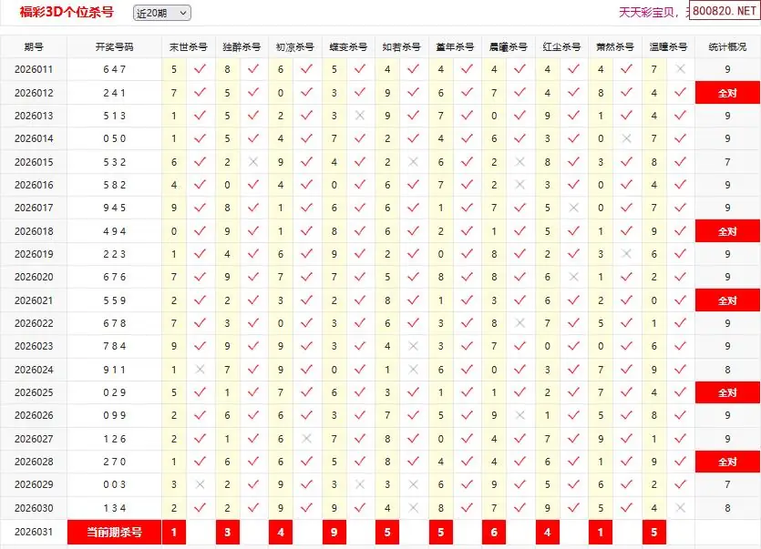 首页〉 3D杀码 走势图 3D胆码3D预测3D图谜3D字谜解太湖3D技巧3D条件3D杀码天齐图库走势图工具试机号 26031期彩宝贝福彩3D百十个位杀号 专题:3D杀码十专家 发布时间:2026-01-31 11:37 开奖:3D开奖结果3D近10期试机号 推荐:宝彩APP 免费方案 智能荐号 热点导航 公告: 天齐新版APP<中大多>上线,点击领鲜 最新文章 中大多 3D第2026031于海滨3D独胆 3D第2026031徐文选3D直选已更新 26年第031期各路专家杀个位3d杀号总汇26年第031期各路专家杀十位3d杀号总汇26年第031期各路专家杀百位3d杀号总汇26年031期[浮梦一生]3d杀一胆 30错726年031期[醉相思]3d杀一码 30错726年031期[顾棋]本期3d杀号 30错9 更多3D杀码 > 福彩3D 双色球 大乐透 排列三 更多> 3D胆码 3D预测 3D字谜 3D图谜 解太湖 3D条件 3D杀码 P3预测 P3图谜 P3字谜 P3条件 P3胆码 P3杀码 热点导航 天齐图库 走势图 工具图表 试机号 宝彩专家 智能荐号 菜单导航 关闭 福彩3D 3D专家 3D胆码 3D预测 3D字谜 3D图谜 解太湖 3D条件 3D杀码 3D技巧 3D走势图 体彩P3/P5 P3专家 P3预测 P3图谜 P3字谜 P3条件 P3胆码 P3杀码 P5预测 P3走势图 双色球 双色球专家 双色球预测 双色球杀号 双色球字图 双色球胆码 双色球走势 双色球技巧 大乐透 大乐透专家 大乐透预测 大乐透杀号 大乐透胆码 大乐透技巧 大乐透走势 天齐图库 七星彩 七星彩专家 七星彩预测 七星彩图谜 七星彩杀号 七星彩技巧 七星彩走势 天齐走势 七乐彩 七乐彩专家 七乐彩预测 七乐彩杀号 七乐彩技巧 七乐彩走势 热点导航 彩宝网 宝彩网 宝彩网 开奖公告 宝彩专家 牛票票