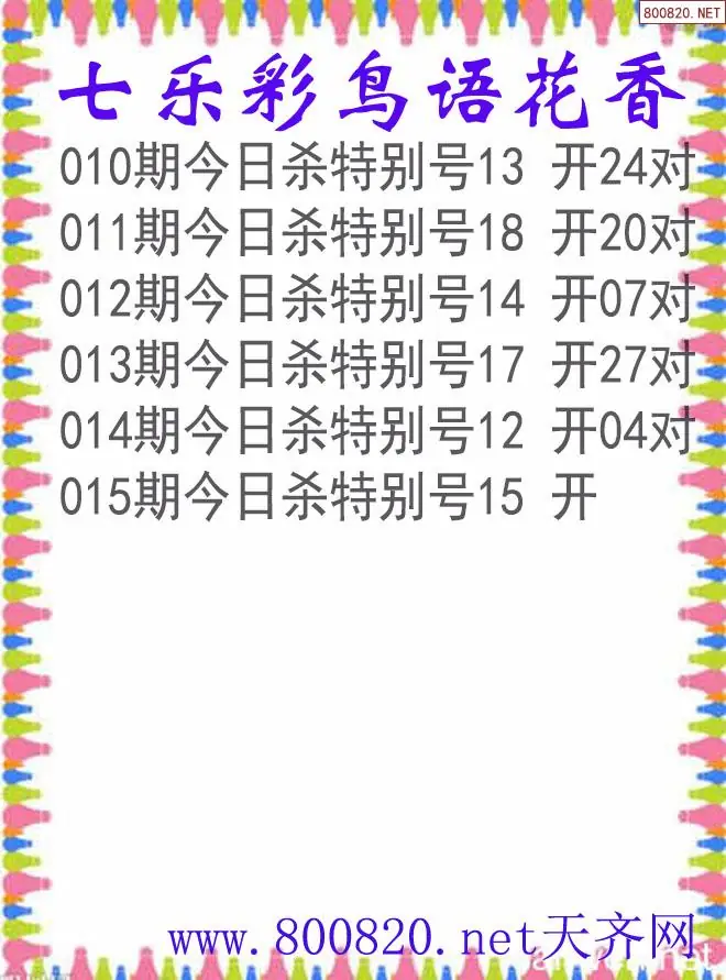首页〉 七乐彩杀号 走势图 七乐彩预测七乐彩杀号七乐彩技巧天齐图库走势图工具试机号 鸟语花香26年015期七乐彩杀号图谜 发布时间:2026-02-03 08:41 走势图:七乐彩基本走势图七乐彩期尾走势图 推荐:宝彩APP 免费方案 智能荐号 热点导航 公告: 天齐新版APP<中大多>上线,点击领鲜 最新文章 中大多 七乐彩第2026015大兵3D免费独胆 七乐彩第2026015免费试料10期 七乐彩26年015期收割者特别号杀码图迷七乐彩26年015期乱舞飞扬特别号杀码图迷七乐彩26015期吉祥天使特别号杀码图迷七乐彩2026015期流光岁月杀码图迷七乐彩26015期舞动乾坤杀两码图迷2026014期彩宝贝七乐彩十大专家杀号定胆汇总 更多七乐彩杀号 > 福彩3D 双色球 大乐透 排列三 更多> 3D胆码 3D预测 3D字谜 3D图谜 解太湖 3D条件 3D杀码 P3预测 P3图谜 P3字谜 P3条件 P3胆码 P3杀码 热点导航 天齐图库 走势图 工具图表 试机号 宝彩专家 智能荐号 菜单导航 关闭 福彩3D 3D专家 3D胆码 3D预测 3D字谜 3D图谜 解太湖 3D条件 3D杀码 3D技巧 3D走势图 体彩P3/P5 P3专家 P3预测 P3图谜 P3字谜 P3条件 P3胆码 P3杀码 P5预测 P3走势图 双色球 双色球专家 双色球预测 双色球杀号 双色球字图 双色球胆码 双色球走势 双色球技巧 大乐透 大乐透专家 大乐透预测 大乐透杀号 大乐透胆码 大乐透技巧 大乐透走势 天齐图库 七星彩 七星彩专家 七星彩预测 七星彩图谜 七星彩杀号 七星彩技巧 七星彩走势 天齐走势 七乐彩 七乐彩专家 七乐彩预测 七乐彩杀号 七乐彩技巧 七乐彩走势 热点导航 彩宝网 宝彩网 宝彩网 开奖公告 宝彩专家 牛票票