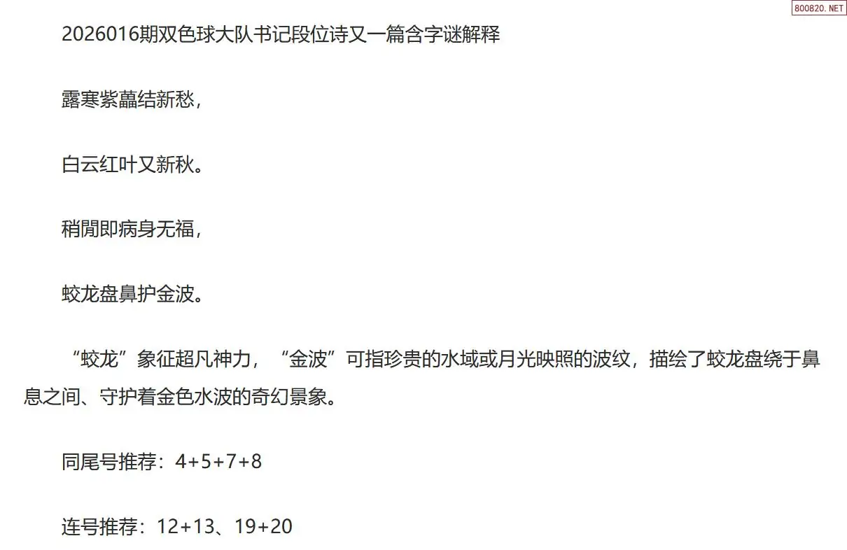 首页〉 双色球字图 走势图 双色球预测双色球杀号双色球技巧双色球字图双色球条件双色球胆码天齐图库走势图工具试机号 双色球第26016期大队书记最新段位诗谜又一篇 专题:大队书记 发布时间:2026-02-03 21:04 工具:双色球胆拖组号双色球缩水过滤 推荐:宝彩APP 免费方案 智能荐号 热点导航 公告: 天齐新版APP<中大多>上线,点击领鲜 最新文章 中大多 双色球第2026016于海滨一语定独胆准 双色球第2026016今晚免费独胆五码 藏机图2026016期天齐原创双色球藏机图迷2025016期天齐网今晚双色球字谜总汇双色球26016期图迷画迷汇总(天齐整理)双色球26年016期天吉龙头凤尾鸟语断蓝图双色球26016期牛彩字谜诗迷汇总(天齐整理)26年016期双色球峨嵋道姑预测诗 更多双色球字图 > 福彩3D 双色球 大乐透 排列三 更多> 3D胆码 3D预测 3D字谜 3D图谜 解太湖 3D条件 3D杀码 P3预测 P3图谜 P3字谜 P3条件 P3胆码 P3杀码 热点导航 天齐图库 走势图 工具图表 试机号 宝彩专家 智能荐号 菜单导航 关闭 福彩3D 3D专家 3D胆码 3D预测 3D字谜 3D图谜 解太湖 3D条件 3D杀码 3D技巧 3D走势图 体彩P3/P5 P3专家 P3预测 P3图谜 P3字谜 P3条件 P3胆码 P3杀码 P5预测 P3走势图 双色球 双色球专家 双色球预测 双色球杀号 双色球字图 双色球胆码 双色球走势 双色球技巧 大乐透 大乐透专家 大乐透预测 大乐透杀号 大乐透胆码 大乐透技巧 大乐透走势 天齐图库 七星彩 七星彩专家 七星彩预测 七星彩图谜 七星彩杀号 七星彩技巧 七星彩走势 天齐走势 七乐彩 七乐彩专家 七乐彩预测 七乐彩杀号 七乐彩技巧 七乐彩走势 热点导航 彩宝网 宝彩网 宝彩网 开奖公告 宝彩专家 牛票票