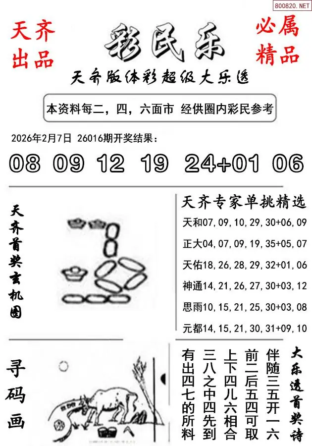 首页〉 大乐透预测 走势图 大乐透预测大乐透杀号大乐透胆码大乐透技巧天齐图库走势图工具试机号 26年017期天齐版大乐透彩民乐图谜 专题:大乐透彩民乐 发布时间:2026-02-07 21:51 走势图:大乐透综合走势图大乐透期尾走势图 推荐:宝彩APP 免费方案 智能荐号 热点导航 公告: 天齐新版APP<中大多>上线,点击领鲜 最新文章 中大多 大乐透第2026017小蓝精灵独胆9中6 大乐透第2026017徐文轩分析独胆定蓝 017期体彩大乐透历史同期对比图表+近期走势图分析大乐透2026年017期名家精选号码推荐总汇大乐透历史上的今天017期大乐透26016期开奖结果 08 09 12 19 24 + 01 06大乐透第26016期[验彩达人]中奖分析后区号球杀号大乐透第26016期[只若初见]分析定胆杀前区号码 更多大乐透预测 > 福彩3D 双色球 大乐透 排列三 更多> 3D胆码 3D预测 3D字谜 3D图谜 解太湖 3D条件 3D杀码 P3预测 P3图谜 P3字谜 P3条件 P3胆码 P3杀码 热点导航 天齐图库 走势图 工具图表 试机号 宝彩专家 智能荐号 菜单导航 关闭 福彩3D 3D专家 3D胆码 3D预测 3D字谜 3D图谜 解太湖 3D条件 3D杀码 3D技巧 3D走势图 体彩P3/P5 P3专家 P3预测 P3图谜 P3字谜 P3条件 P3胆码 P3杀码 P5预测 P3走势图 双色球 双色球专家 双色球预测 双色球杀号 双色球字图 双色球胆码 双色球走势 双色球技巧 大乐透 大乐透专家 大乐透预测 大乐透杀号 大乐透胆码 大乐透技巧 大乐透走势 天齐图库 七星彩 七星彩专家 七星彩预测 七星彩图谜 七星彩杀号 七星彩技巧 七星彩走势 天齐走势 七乐彩 七乐彩专家 七乐彩预测 七乐彩杀号 七乐彩技巧 七乐彩走势 热点导航 彩宝网 宝彩网 宝彩网 开奖公告 宝彩专家 牛票票