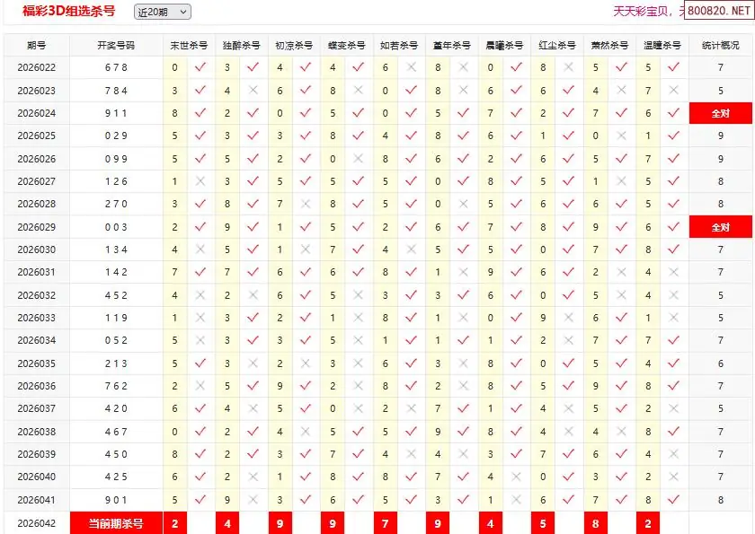 首页〉 3D杀码 走势图 3D胆码3D预测3D图谜3D字谜解太湖3D技巧3D条件3D杀码天齐图库走势图工具试机号 26042期彩宝贝福彩3D组选杀号 专题:3D杀码十专家 发布时间:2026-02-11 10:32 开奖:3D开奖结果3D近10期试机号 推荐:宝彩APP 免费方案 智能荐号 热点导航 公告: 天齐新版APP<中大多>上线,点击领鲜 最新文章 中大多 3D第2026042于海滨3D独胆 3D第2026042组选形态(限10名) 26年042期[浮梦一生]3d杀一胆 40错1026年042期[醉相思]3d杀一码 40错1126年042期[忆往昔]3d本期杀号 40错1626年042期[顾棋]本期3d杀号 40错1126年042期[孤影梵然]杀双胆 40错2526年042期[流星风雨]3d杀一码 40错14 更多3D杀码 > 福彩3D 双色球 大乐透 排列三 更多> 3D胆码 3D预测 3D字谜 3D图谜 解太湖 3D条件 3D杀码 P3预测 P3图谜 P3字谜 P3条件 P3胆码 P3杀码 热点导航 天齐图库 走势图 工具图表 试机号 宝彩专家 智能荐号 菜单导航 关闭 福彩3D 3D专家 3D胆码 3D预测 3D字谜 3D图谜 解太湖 3D条件 3D杀码 3D技巧 3D走势图 体彩P3/P5 P3专家 P3预测 P3图谜 P3字谜 P3条件 P3胆码 P3杀码 P5预测 P3走势图 双色球 双色球专家 双色球预测 双色球杀号 双色球字图 双色球胆码 双色球走势 双色球技巧 大乐透 大乐透专家 大乐透预测 大乐透杀号 大乐透胆码 大乐透技巧 大乐透走势 天齐图库 七星彩 七星彩专家 七星彩预测 七星彩图谜 七星彩杀号 七星彩技巧 七星彩走势 天齐走势 七乐彩 七乐彩专家 七乐彩预测 七乐彩杀号 七乐彩技巧 七乐彩走势 热点导航 彩宝网 宝彩网 宝彩网 开奖公告 宝彩专家 牛票票