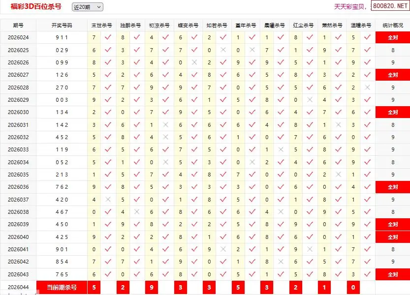 首页〉 3D杀码 走势图 3D胆码3D预测3D图谜3D字谜解太湖3D技巧3D条件3D杀码天齐图库走势图工具试机号 26044期彩宝贝福彩3D百十个位杀号 专题:3D杀码十专家 发布时间:2026-02-13 10:12 开奖:3D开奖结果3D近10期试机号 推荐:宝彩APP 免费方案 智能荐号 热点导航 公告: 天齐新版APP<中大多>上线,点击领鲜 最新文章 中大多 3D第2026044真帝王宝图预测3D准 3D第2026044于海滨3D直选 26年044期[浮梦一生]3d杀一胆 43错1126年044期[醉相思]3d杀一码 43错1126年044期[忆往昔]3d本期杀号 43错1626年044期[顾棋]本期3d杀号 43错1126年044期[孤影梵然]杀双胆 43错2526年044期[流星风雨]3d杀一码 43错14 更多3D杀码 > 福彩3D 双色球 大乐透 排列三 更多> 3D胆码 3D预测 3D字谜 3D图谜 解太湖 3D条件 3D杀码 P3预测 P3图谜 P3字谜 P3条件 P3胆码 P3杀码 热点导航 天齐图库 走势图 工具图表 试机号 宝彩专家 智能荐号 菜单导航 关闭 福彩3D 3D专家 3D胆码 3D预测 3D字谜 3D图谜 解太湖 3D条件 3D杀码 3D技巧 3D走势图 体彩P3/P5 P3专家 P3预测 P3图谜 P3字谜 P3条件 P3胆码 P3杀码 P5预测 P3走势图 双色球 双色球专家 双色球预测 双色球杀号 双色球字图 双色球胆码 双色球走势 双色球技巧 大乐透 大乐透专家 大乐透预测 大乐透杀号 大乐透胆码 大乐透技巧 大乐透走势 天齐图库 七星彩 七星彩专家 七星彩预测 七星彩图谜 七星彩杀号 七星彩技巧 七星彩走势 天齐走势 七乐彩 七乐彩专家 七乐彩预测 七乐彩杀号 七乐彩技巧 七乐彩走势 热点导航 彩宝网 宝彩网 宝彩网 开奖公告 宝彩专家 牛票票