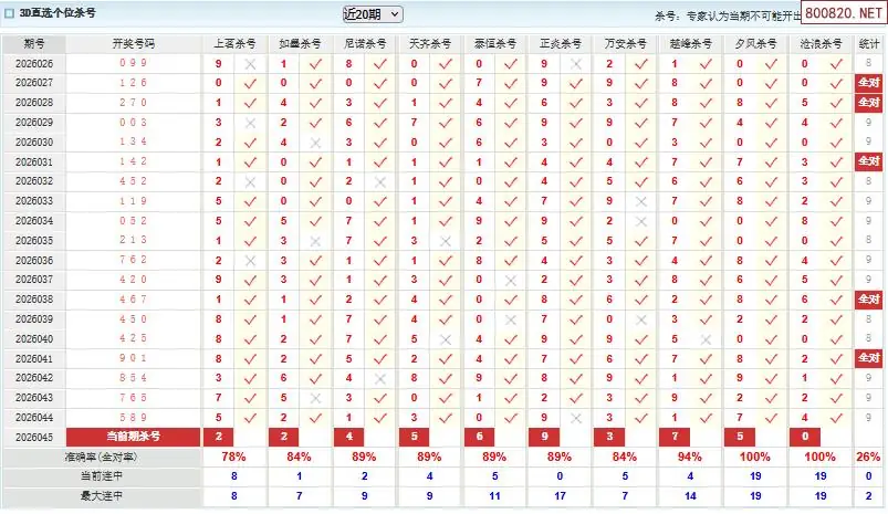 首页〉 3D杀码 走势图 3D胆码3D预测3D图谜3D字谜解太湖3D技巧3D条件3D杀码天齐图库走势图工具试机号 福彩3d26年045期澳客专家杀直选号码 专题:3D杀码十专家 发布时间:2026-02-23 11:34 开奖:3D开奖结果3D近10期试机号 推荐:宝彩APP 免费方案 智能荐号 热点导航 公告: 天齐新版APP<中大多>上线,点击领鲜 最新文章 中大多 3D第2026045丹东鬼六预测准 3D第2026045徐文选3D独胆已连准 26年045期[浮梦一生]3d杀一胆 44错1126年045期[醉相思]3d杀一码 44错1126年045期[忆往昔]3d本期杀号 44错1626年045期[顾棋]本期3d杀号 44错1126年045期[孤影梵然]杀双胆 44错2626年045期[流星风雨]3d杀一码 44错15 更多3D杀码 > 福彩3D 双色球 大乐透 排列三 更多> 3D胆码 3D预测 3D字谜 3D图谜 解太湖 3D条件 3D杀码 P3预测 P3图谜 P3字谜 P3条件 P3胆码 P3杀码 热点导航 天齐图库 走势图 工具图表 试机号 宝彩专家 智能荐号 菜单导航 关闭 福彩3D 3D专家 3D胆码 3D预测 3D字谜 3D图谜 解太湖 3D条件 3D杀码 3D技巧 3D走势图 体彩P3/P5 P3专家 P3预测 P3图谜 P3字谜 P3条件 P3胆码 P3杀码 P5预测 P3走势图 双色球 双色球专家 双色球预测 双色球杀号 双色球字图 双色球胆码 双色球走势 双色球技巧 大乐透 大乐透专家 大乐透预测 大乐透杀号 大乐透胆码 大乐透技巧 大乐透走势 天齐图库 七星彩 七星彩专家 七星彩预测 七星彩图谜 七星彩杀号 七星彩技巧 七星彩走势 天齐走势 七乐彩 七乐彩专家 七乐彩预测 七乐彩杀号 七乐彩技巧 七乐彩走势 热点导航 彩宝网 宝彩网 宝彩网 开奖公告 宝彩专家 牛票票