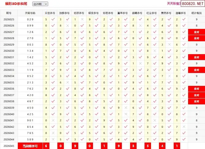 首页〉 3D条件 走势图 3D胆码3D预测3D图谜3D字谜解太湖3D技巧3D条件3D杀码天齐图库走势图工具试机号 26045期彩宝贝福彩3D杀和尾 专题:3d和尾十专家杀尾汇总 发布时间:2026-02-23 11:34 开奖:3D开奖结果3D近10期试机号 推荐:宝彩APP 免费方案 智能荐号 热点导航 公告: 天齐新版APP<中大多>上线,点击领鲜 最新文章 中大多 3D第2026045徐文选3D直选已更新 3D第2026045于海滨3D直选免费领 [交友]第2026045期3D本期单挑和差2026年福彩3D045期[天涯草]精选断组-原创2026年福彩3D045期[圆圆]杀二码组合-原创2026年福彩3D045期[神算胆王]绝杀和值-原创2026年福彩3D045期[仙子]杀跨度-原创2026年福彩3D045期[无殇]专业断组-原创 更多3D条件 > 福彩3D 双色球 大乐透 排列三 更多> 3D胆码 3D预测 3D字谜 3D图谜 解太湖 3D条件 3D杀码 P3预测 P3图谜 P3字谜 P3条件 P3胆码 P3杀码 热点导航 天齐图库 走势图 工具图表 试机号 宝彩专家 智能荐号 菜单导航 关闭 福彩3D 3D专家 3D胆码 3D预测 3D字谜 3D图谜 解太湖 3D条件 3D杀码 3D技巧 3D走势图 体彩P3/P5 P3专家 P3预测 P3图谜 P3字谜 P3条件 P3胆码 P3杀码 P5预测 P3走势图 双色球 双色球专家 双色球预测 双色球杀号 双色球字图 双色球胆码 双色球走势 双色球技巧 大乐透 大乐透专家 大乐透预测 大乐透杀号 大乐透胆码 大乐透技巧 大乐透走势 天齐图库 七星彩 七星彩专家 七星彩预测 七星彩图谜 七星彩杀号 七星彩技巧 七星彩走势 天齐走势 七乐彩 七乐彩专家 七乐彩预测 七乐彩杀号 七乐彩技巧 七乐彩走势 热点导航 彩宝网 宝彩网 宝彩网 开奖公告 宝彩专家 牛票票