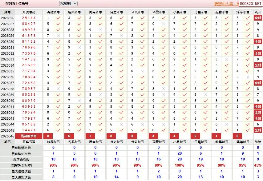首页〉 P5预测 走势图 P3预测P3图谜P3字谜P3技巧P3条件P3胆码P3杀码P5预测天齐图库走势图工具试机号 体彩P52026年046期彩经彩票十大专家杀号 专题:p5杀码 发布时间:2026-02-25 11:03 工具:P3过滤缩水P3试机号走势图 推荐:宝彩APP 免费方案 智能荐号 热点导航 公告: 天齐新版APP<中大多>上线,点击领鲜 最新文章 中大多 排列三第2026047老北京3D独胆 排列三第2026047大兵3D免费独胆 046期体彩P5历史同期对比图表+近期走势图分析体彩P5[伶韵]26年046期今期杀码预测 45错15体彩P5[逄芷荷]26年046期本期精选杀码 45错14体彩P5[顾昕珏]26年046期今天杀码提示 45错14体彩P5[必由之地]26年046期本期五码精选 45错4体彩P5期[筚门闺窬]26年046期五个胆码分析 45错1 更多P5预测 > 福彩3D 双色球 大乐透 排列三 更多> 3D胆码 3D预测 3D字谜 3D图谜 解太湖 3D条件 3D杀码 P3预测 P3图谜 P3字谜 P3条件 P3胆码 P3杀码 热点导航 天齐图库 走势图 工具图表 试机号 宝彩专家 智能荐号 菜单导航 关闭 福彩3D 3D专家 3D胆码 3D预测 3D字谜 3D图谜 解太湖 3D条件 3D杀码 3D技巧 3D走势图 体彩P3/P5 P3专家 P3预测 P3图谜 P3字谜 P3条件 P3胆码 P3杀码 P5预测 P3走势图 双色球 双色球专家 双色球预测 双色球杀号 双色球字图 双色球胆码 双色球走势 双色球技巧 大乐透 大乐透专家 大乐透预测 大乐透杀号 大乐透胆码 大乐透技巧 大乐透走势 天齐图库 七星彩 七星彩专家 七星彩预测 七星彩图谜 七星彩杀号 七星彩技巧 七星彩走势 天齐走势 七乐彩 七乐彩专家 七乐彩预测 七乐彩杀号 七乐彩技巧 七乐彩走势 热点导航 彩宝网 宝彩网 宝彩网 开奖公告 宝彩专家 牛票票