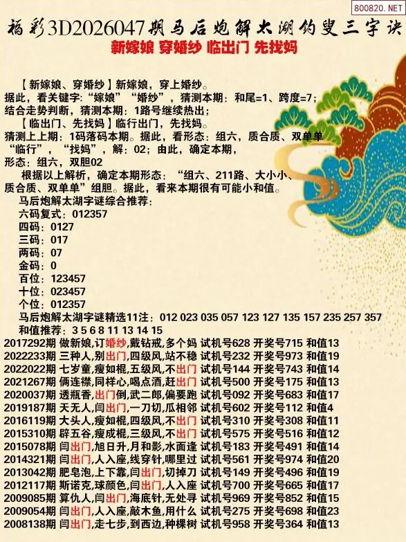 首页〉 解太湖 走势图 3D胆码3D预测3D图谜3D字谜解太湖3D技巧3D条件3D杀码天齐图库走势图工具试机号 26年047期马后炮解太湖字谜之-新嫁娘 穿婚纱 临出门 先找妈 专题:马后炮解太湖谜 发布时间:2026-02-25 20:28 开奖:3D开奖结果3D近10期试机号 推荐:宝彩APP 免费方案 智能荐号 热点导航 公告: 天齐新版APP<中大多>上线,点击领鲜 最新文章 中大多 3D第20260473D全部料3注已更新 3D第2026047今期6+1一注实力推荐 26年047期马后炮解太湖字谜之-新嫁娘 穿婚纱 临出门 先找妈26047期3D丹东解太湖 天龙一语 布衣神算26年047期白鱼舟太湖钓叟三字诀解谜天涯草解太湖26年047期太湖 临出门福彩3D2026年046期[白虎]解太湖谚语 列四条福彩3D2026年046期[青龙]解太湖字谜之一开口 更多解太湖 > 福彩3D 双色球 大乐透 排列三 更多> 3D胆码 3D预测 3D字谜 3D图谜 解太湖 3D条件 3D杀码 P3预测 P3图谜 P3字谜 P3条件 P3胆码 P3杀码 热点导航 天齐图库 走势图 工具图表 试机号 宝彩专家 智能荐号 菜单导航 关闭 福彩3D 3D专家 3D胆码 3D预测 3D字谜 3D图谜 解太湖 3D条件 3D杀码 3D技巧 3D走势图 体彩P3/P5 P3专家 P3预测 P3图谜 P3字谜 P3条件 P3胆码 P3杀码 P5预测 P3走势图 双色球 双色球专家 双色球预测 双色球杀号 双色球字图 双色球胆码 双色球走势 双色球技巧 大乐透 大乐透专家 大乐透预测 大乐透杀号 大乐透胆码 大乐透技巧 大乐透走势 天齐图库 七星彩 七星彩专家 七星彩预测 七星彩图谜 七星彩杀号 七星彩技巧 七星彩走势 天齐走势 七乐彩 七乐彩专家 七乐彩预测 七乐彩杀号 七乐彩技巧 七乐彩走势 热点导航 彩宝网 宝彩网 宝彩网 开奖公告 宝彩专家 牛票票