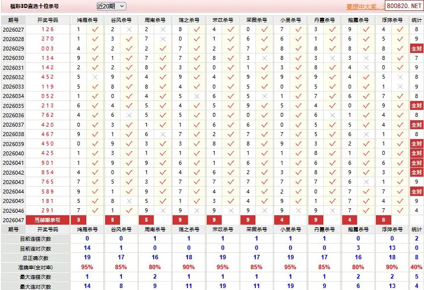 首页〉 3D杀码 走势图 3D胆码3D预测3D图谜3D字谜解太湖3D技巧3D条件3D杀码天齐图库走势图工具试机号 26年047期福彩3d彩经十大专家直选杀号 专题:3D杀码十专家 发布时间:2026-02-26 11:05 开奖:3D开奖结果3D近10期试机号 推荐:宝彩APP 免费方案 智能荐号 热点导航 公告: 天齐新版APP<中大多>上线,点击领鲜 最新文章 中大多 3D第2026047小蓝精灵独胆9中6 3D第2026047一码毒蓝连中8期 26047期彩宝贝福彩3D组选杀号26047期彩宝贝福彩3D百十个位杀号26年047期福彩3d彩经十大专家组选杀号26年047期福彩3d彩经十大专家直选杀号福彩3d26年047期澳客专家杀组选号码福彩3d26年047期澳客专家杀直选号码 更多3D杀码 > 福彩3D 双色球 大乐透 排列三 更多> 3D胆码 3D预测 3D字谜 3D图谜 解太湖 3D条件 3D杀码 P3预测 P3图谜 P3字谜 P3条件 P3胆码 P3杀码 热点导航 天齐图库 走势图 工具图表 试机号 宝彩专家 智能荐号 菜单导航 关闭 福彩3D 3D专家 3D胆码 3D预测 3D字谜 3D图谜 解太湖 3D条件 3D杀码 3D技巧 3D走势图 体彩P3/P5 P3专家 P3预测 P3图谜 P3字谜 P3条件 P3胆码 P3杀码 P5预测 P3走势图 双色球 双色球专家 双色球预测 双色球杀号 双色球字图 双色球胆码 双色球走势 双色球技巧 大乐透 大乐透专家 大乐透预测 大乐透杀号 大乐透胆码 大乐透技巧 大乐透走势 天齐图库 七星彩 七星彩专家 七星彩预测 七星彩图谜 七星彩杀号 七星彩技巧 七星彩走势 天齐走势 七乐彩 七乐彩专家 七乐彩预测 七乐彩杀号 七乐彩技巧 七乐彩走势 热点导航 彩宝网 宝彩网 宝彩网 开奖公告 宝彩专家 牛票票