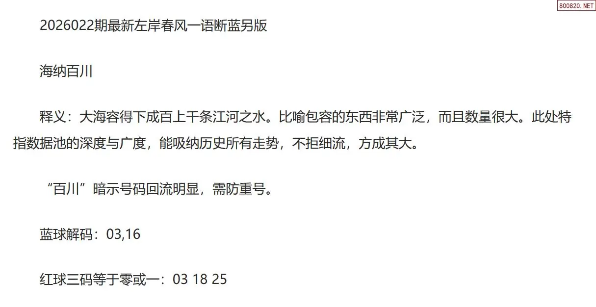 首页〉 双色球字图 走势图 双色球预测双色球杀号双色球技巧双色球字图双色球条件双色球胆码天齐图库走势图工具试机号 双色球26年022期左岸春风一语断蓝球(另版) 专题:左岸春风 发布时间:2026-02-26 21:09 工具:双色球胆拖组号双色球缩水过滤 推荐:宝彩APP 免费方案 智能荐号 热点导航 公告: 天齐新版APP<中大多>上线,点击领鲜 最新文章 中大多 双色球第20260223D六鬼5码复试5中4 双色球第2026022今日一注100%中奖 藏机图2026022期天齐原创双色球藏机图迷2025022期天齐网今晚双色球字谜总汇双色球26022期图迷画迷汇总(天齐整理)双色球26年022期天吉龙头凤尾鸟语断蓝图双色球26年022期左岸春风一语断蓝球(另版)双色球第26022期大队书记最新段位诗谜又一篇 更多双色球字图 > 福彩3D 双色球 大乐透 排列三 更多> 3D胆码 3D预测 3D字谜 3D图谜 解太湖 3D条件 3D杀码 P3预测 P3图谜 P3字谜 P3条件 P3胆码 P3杀码 热点导航 天齐图库 走势图 工具图表 试机号 宝彩专家 智能荐号 菜单导航 关闭 福彩3D 3D专家 3D胆码 3D预测 3D字谜 3D图谜 解太湖 3D条件 3D杀码 3D技巧 3D走势图 体彩P3/P5 P3专家 P3预测 P3图谜 P3字谜 P3条件 P3胆码 P3杀码 P5预测 P3走势图 双色球 双色球专家 双色球预测 双色球杀号 双色球字图 双色球胆码 双色球走势 双色球技巧 大乐透 大乐透专家 大乐透预测 大乐透杀号 大乐透胆码 大乐透技巧 大乐透走势 天齐图库 七星彩 七星彩专家 七星彩预测 七星彩图谜 七星彩杀号 七星彩技巧 七星彩走势 天齐走势 七乐彩 七乐彩专家 七乐彩预测 七乐彩杀号 七乐彩技巧 七乐彩走势 热点导航 彩宝网 宝彩网 宝彩网 开奖公告 宝彩专家 牛票票