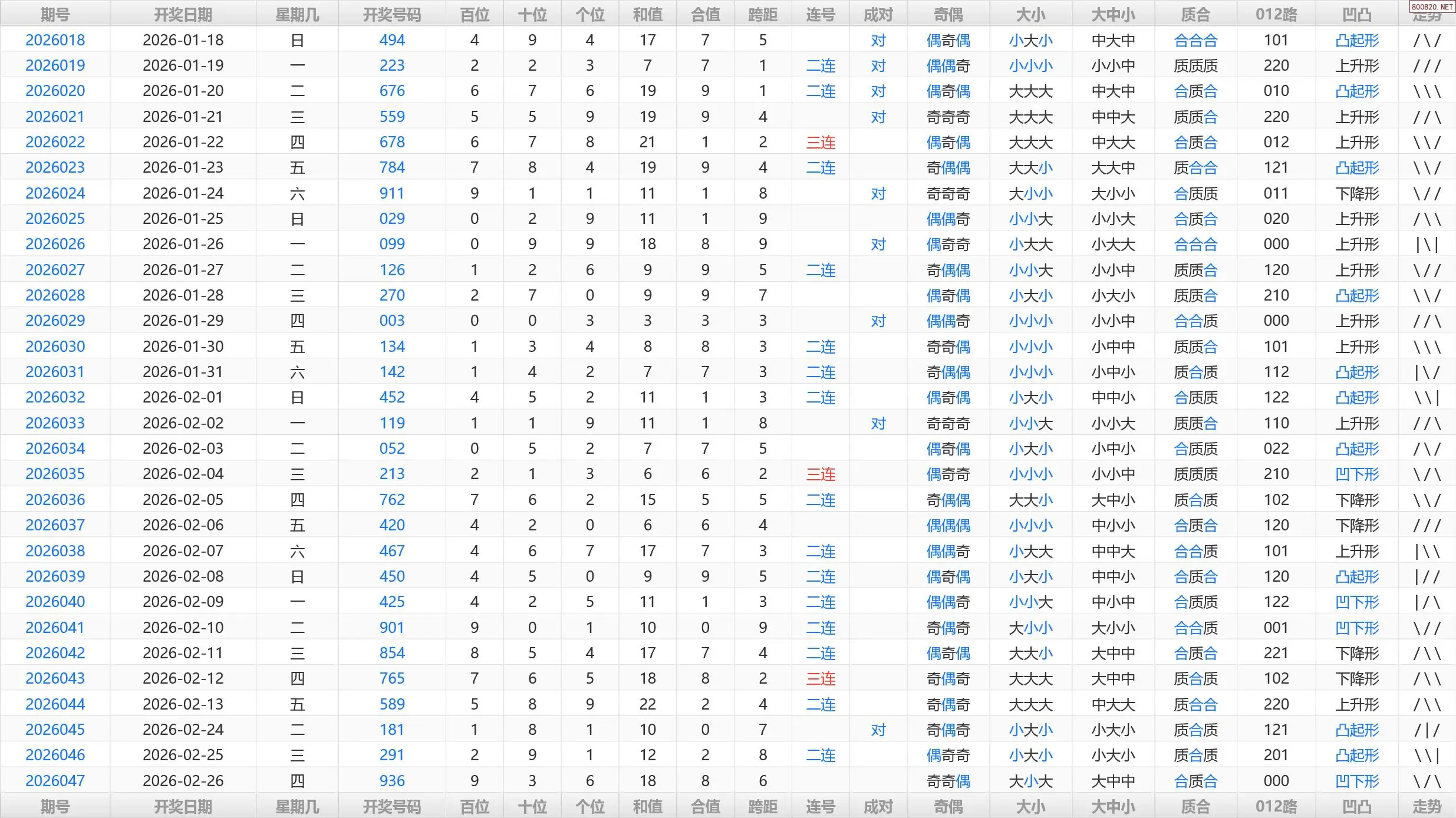 首页〉 3D预测 走势图 3D胆码3D预测3D图谜3D字谜解太湖3D技巧3D条件3D杀码天齐图库走势图工具试机号 048期福彩3D历史开奖号码统计表 发布时间:2026-02-26 21:42 开奖:3D开奖结果3D近10期试机号 推荐:宝彩APP 免费方案 智能荐号 热点导航 公告: 天齐新版APP<中大多>上线,点击领鲜 最新文章 中大多 3D第2026048于海滨3D独胆 3D第2026048唐龙3D独胆8中7 26年048期福彩3d校验码40526年048期孟庆会点评+专家一语定胆《保真》26年048期福彩3D模拟开奖号码+详细分析26年048期天齐收集彩吧论坛福彩3D原创预测汇总26年048期天齐福彩3D专家预测分析总汇[晚间版]048期福彩3D历史同期对比图表+近期走势图分析 更多3D预测 > 福彩3D 双色球 大乐透 排列三 更多> 3D胆码 3D预测 3D字谜 3D图谜 解太湖 3D条件 3D杀码 P3预测 P3图谜 P3字谜 P3条件 P3胆码 P3杀码 热点导航 天齐图库 走势图 工具图表 试机号 宝彩专家 智能荐号 菜单导航 关闭 福彩3D 3D专家 3D胆码 3D预测 3D字谜 3D图谜 解太湖 3D条件 3D杀码 3D技巧 3D走势图 体彩P3/P5 P3专家 P3预测 P3图谜 P3字谜 P3条件 P3胆码 P3杀码 P5预测 P3走势图 双色球 双色球专家 双色球预测 双色球杀号 双色球字图 双色球胆码 双色球走势 双色球技巧 大乐透 大乐透专家 大乐透预测 大乐透杀号 大乐透胆码 大乐透技巧 大乐透走势 天齐图库 七星彩 七星彩专家 七星彩预测 七星彩图谜 七星彩杀号 七星彩技巧 七星彩走势 天齐走势 七乐彩 七乐彩专家 七乐彩预测 七乐彩杀号 七乐彩技巧 七乐彩走势 热点导航 彩宝网 宝彩网 宝彩网 开奖公告 宝彩专家 牛票票