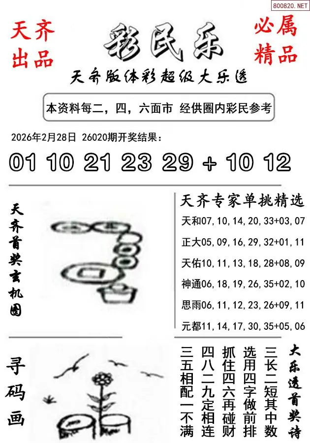 首页〉 大乐透预测 走势图 大乐透预测大乐透杀号大乐透胆码大乐透技巧天齐图库走势图工具试机号 26年021期天齐版大乐透彩民乐图谜 专题:大乐透彩民乐 发布时间:2026-02-28 22:17 走势图:大乐透综合走势图大乐透期尾走势图 推荐:宝彩APP 免费方案 智能荐号 热点导航 公告: 天齐新版APP<中大多>上线,点击领鲜 最新文章 中大多 大乐透第2026021徐文轩分析独胆定蓝 大乐透第2026021于海滨3D胆码预测 大乐透2026年021期名家精选号码推荐总汇历史上的今天大乐透3月2日开奖号码汇总021期体彩大乐透历史同期对比图表+近期走势图分析大乐透历史上的今天021期超级大乐透26年第021期[财源广进]10+3复式推荐超级大乐透26年021期[小兔兔]本期一区间号码推荐 更多大乐透预测 > 福彩3D 双色球 大乐透 排列三 更多> 3D胆码 3D预测 3D字谜 3D图谜 解太湖 3D条件 3D杀码 P3预测 P3图谜 P3字谜 P3条件 P3胆码 P3杀码 热点导航 天齐图库 走势图 工具图表 试机号 宝彩专家 智能荐号 菜单导航 关闭 福彩3D 3D专家 3D胆码 3D预测 3D字谜 3D图谜 解太湖 3D条件 3D杀码 3D技巧 3D走势图 体彩P3/P5 P3专家 P3预测 P3图谜 P3字谜 P3条件 P3胆码 P3杀码 P5预测 P3走势图 双色球 双色球专家 双色球预测 双色球杀号 双色球字图 双色球胆码 双色球走势 双色球技巧 大乐透 大乐透专家 大乐透预测 大乐透杀号 大乐透胆码 大乐透技巧 大乐透走势 天齐图库 七星彩 七星彩专家 七星彩预测 七星彩图谜 七星彩杀号 七星彩技巧 七星彩走势 天齐走势 七乐彩 七乐彩专家 七乐彩预测 七乐彩杀号 七乐彩技巧 七乐彩走势 热点导航 彩宝网 宝彩网 宝彩网 开奖公告 宝彩专家 牛票票