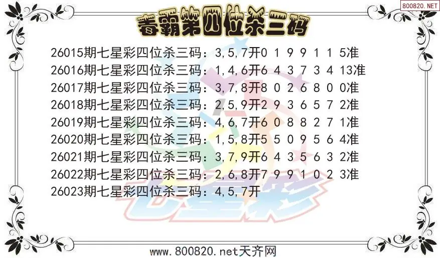 首页〉 七星彩图谜 走势图 七星彩预测七星彩图谜七星彩杀号七星彩技巧天齐图库走势图工具试机号 毒霸26年023期七星彩杀号图谜 发布时间:2026-03-01 22:13 走势图:七星彩基本走势图七星彩期尾走势图 推荐:宝彩APP 免费方案 智能荐号 热点导航 公告: 天齐新版APP<中大多>上线,点击领鲜 最新文章 中大多 七星彩第2026023徐文选3D直选已更新 七星彩第2026023双飞独胆免费领取 七星彩26年第023期四季如春定位杀码图迷七星彩26年023期乱世佳人胆码图迷七星彩26023期繁华落尽胆组图迷七星彩26023期诸葛财神独胆分析图迷七星彩2026023期金色年华胆码推荐图迷2026年023期龟丞相七星彩三码预测图 更多七星彩图谜 > 福彩3D 双色球 大乐透 排列三 更多> 3D胆码 3D预测 3D字谜 3D图谜 解太湖 3D条件 3D杀码 P3预测 P3图谜 P3字谜 P3条件 P3胆码 P3杀码 热点导航 天齐图库 走势图 工具图表 试机号 宝彩专家 智能荐号 菜单导航 关闭 福彩3D 3D专家 3D胆码 3D预测 3D字谜 3D图谜 解太湖 3D条件 3D杀码 3D技巧 3D走势图 体彩P3/P5 P3专家 P3预测 P3图谜 P3字谜 P3条件 P3胆码 P3杀码 P5预测 P3走势图 双色球 双色球专家 双色球预测 双色球杀号 双色球字图 双色球胆码 双色球走势 双色球技巧 大乐透 大乐透专家 大乐透预测 大乐透杀号 大乐透胆码 大乐透技巧 大乐透走势 天齐图库 七星彩 七星彩专家 七星彩预测 七星彩图谜 七星彩杀号 七星彩技巧 七星彩走势 天齐走势 七乐彩 七乐彩专家 七乐彩预测 七乐彩杀号 七乐彩技巧 七乐彩走势 热点导航 彩宝网 宝彩网 宝彩网 开奖公告 宝彩专家 牛票票