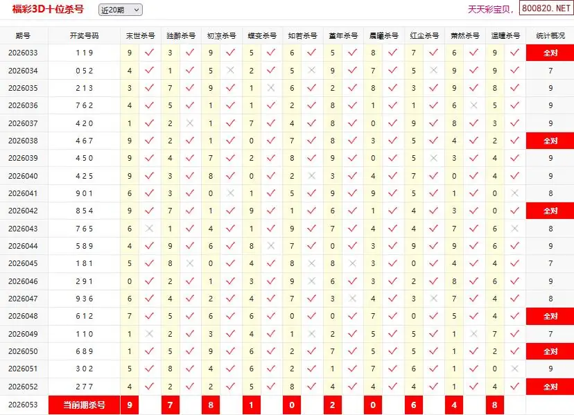 首页〉 3D杀码 走势图 3D胆码3D预测3D图谜3D字谜解太湖3D技巧3D条件3D杀码天齐图库走势图工具试机号 26053期彩宝贝福彩3D百十个位杀号 专题:3D杀码十专家 发布时间:2026-03-04 10:25 开奖:3D开奖结果3D近10期试机号 推荐:宝彩APP 免费方案 智能荐号 热点导航 公告: 天齐新版APP<中大多>上线,点击领鲜 最新文章 中大多 3D第2026053免费试料⑧中3 3D第2026053徐文轩预测本期3D直选 26053期彩宝贝福彩3D组选杀号26053期彩宝贝福彩3D百十个位杀号26年053期福彩3d彩经十大专家组选杀号26年053期福彩3d彩经十大专家直选杀号福彩3d26年053期澳客专家杀组选号码福彩3d26年053期澳客专家杀直选号码 更多3D杀码 > 福彩3D 双色球 大乐透 排列三 更多> 3D胆码 3D预测 3D字谜 3D图谜 解太湖 3D条件 3D杀码 P3预测 P3图谜 P3字谜 P3条件 P3胆码 P3杀码 热点导航 天齐图库 走势图 工具图表 试机号 宝彩专家 智能荐号 菜单导航 关闭 福彩3D 3D专家 3D胆码 3D预测 3D字谜 3D图谜 解太湖 3D条件 3D杀码 3D技巧 3D走势图 体彩P3/P5 P3专家 P3预测 P3图谜 P3字谜 P3条件 P3胆码 P3杀码 P5预测 P3走势图 双色球 双色球专家 双色球预测 双色球杀号 双色球字图 双色球胆码 双色球走势 双色球技巧 大乐透 大乐透专家 大乐透预测 大乐透杀号 大乐透胆码 大乐透技巧 大乐透走势 天齐图库 七星彩 七星彩专家 七星彩预测 七星彩图谜 七星彩杀号 七星彩技巧 七星彩走势 天齐走势 七乐彩 七乐彩专家 七乐彩预测 七乐彩杀号 七乐彩技巧 七乐彩走势 热点导航 彩宝网 宝彩网 宝彩网 开奖公告 宝彩专家 牛票票