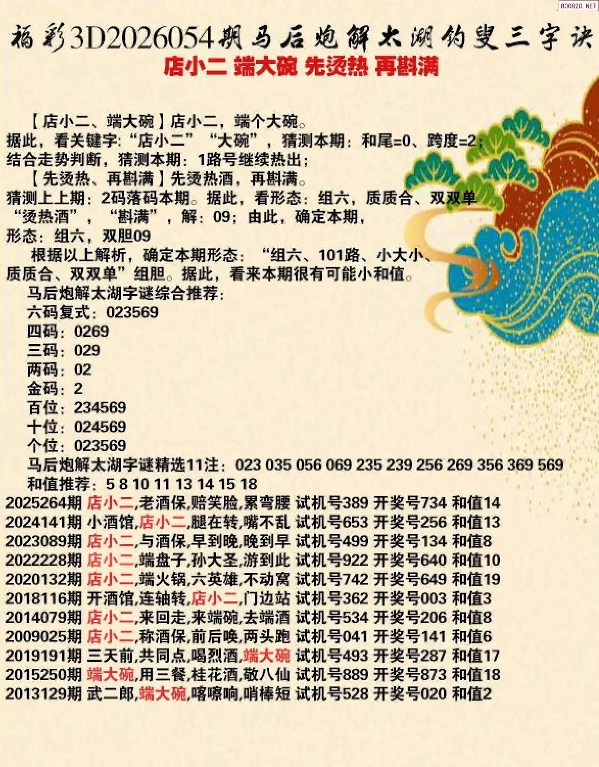 首页〉 解太湖 走势图 3D胆码3D预测3D图谜3D字谜解太湖3D技巧3D条件3D杀码天齐图库走势图工具试机号 26年054期马后炮解太湖字谜之-店小二 端大碗 先烫热 再斟满 专题:马后炮解太湖谜 发布时间:2026-03-04 20:36 开奖:3D开奖结果3D近10期试机号 推荐:宝彩APP 免费方案 智能荐号 热点导航 公告: 天齐新版APP<中大多>上线,点击领鲜 最新文章 中大多 3D第2026054特邀全部专家 3D第2026054今日一注100%中奖 26054期3D丹东解太湖 天龙一语 布衣神算福彩3D2026年053期[白虎]解太湖谚语 人爱旧福彩3D2026年053期[青龙]解太湖字谜之衣爱新福彩3D2026年053期[鱼跃龙门]今期太湖钓叟解释 圆滚滚福彩3D2026年053期[甲第星罗]巧解太湖衣爱新 人爱旧福彩3D2026年053期[百福臻]解太湖之衣爱新 更多解太湖 > 福彩3D 双色球 大乐透 排列三 更多> 3D胆码 3D预测 3D字谜 3D图谜 解太湖 3D条件 3D杀码 P3预测 P3图谜 P3字谜 P3条件 P3胆码 P3杀码 热点导航 天齐图库 走势图 工具图表 试机号 宝彩专家 智能荐号 菜单导航 关闭 福彩3D 3D专家 3D胆码 3D预测 3D字谜 3D图谜 解太湖 3D条件 3D杀码 3D技巧 3D走势图 体彩P3/P5 P3专家 P3预测 P3图谜 P3字谜 P3条件 P3胆码 P3杀码 P5预测 P3走势图 双色球 双色球专家 双色球预测 双色球杀号 双色球字图 双色球胆码 双色球走势 双色球技巧 大乐透 大乐透专家 大乐透预测 大乐透杀号 大乐透胆码 大乐透技巧 大乐透走势 天齐图库 七星彩 七星彩专家 七星彩预测 七星彩图谜 七星彩杀号 七星彩技巧 七星彩走势 天齐走势 七乐彩 七乐彩专家 七乐彩预测 七乐彩杀号 七乐彩技巧 七乐彩走势 热点导航 彩宝网 宝彩网 宝彩网 开奖公告 宝彩专家 牛票票