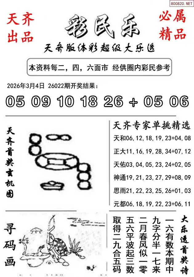 首页〉 大乐透预测 走势图 大乐透预测大乐透杀号大乐透胆码大乐透技巧天齐图库走势图工具试机号 26年023期天齐版大乐透彩民乐图谜 专题:大乐透彩民乐 发布时间:2026-03-04 21:44 走势图:大乐透综合走势图大乐透期尾走势图 推荐:宝彩APP 免费方案 智能荐号 热点导航 公告: 天齐新版APP<中大多>上线,点击领鲜 最新文章 中大多 大乐透第2026023五码推荐10连中3 大乐透第2026023《直选一注连中3期》 大乐透2026年023期名家精选号码推荐总汇历史上的今天大乐透3月7日开奖号码汇总26年023期天齐版大乐透彩民乐图谜023期体彩大乐透历史同期对比图表+近期走势图分析大乐透历史上的今天023期26年大乐透第023期[天行健]本期娱乐6+3组合推荐如下 更多大乐透预测 > 福彩3D 双色球 大乐透 排列三 更多> 3D胆码 3D预测 3D字谜 3D图谜 解太湖 3D条件 3D杀码 P3预测 P3图谜 P3字谜 P3条件 P3胆码 P3杀码 热点导航 天齐图库 走势图 工具图表 试机号 宝彩专家 智能荐号 菜单导航 关闭 福彩3D 3D专家 3D胆码 3D预测 3D字谜 3D图谜 解太湖 3D条件 3D杀码 3D技巧 3D走势图 体彩P3/P5 P3专家 P3预测 P3图谜 P3字谜 P3条件 P3胆码 P3杀码 P5预测 P3走势图 双色球 双色球专家 双色球预测 双色球杀号 双色球字图 双色球胆码 双色球走势 双色球技巧 大乐透 大乐透专家 大乐透预测 大乐透杀号 大乐透胆码 大乐透技巧 大乐透走势 天齐图库 七星彩 七星彩专家 七星彩预测 七星彩图谜 七星彩杀号 七星彩技巧 七星彩走势 天齐走势 七乐彩 七乐彩专家 七乐彩预测 七乐彩杀号 七乐彩技巧 七乐彩走势 热点导航 彩宝网 宝彩网 宝彩网 开奖公告 宝彩专家 牛票票