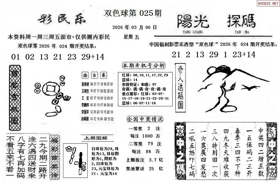 首页〉 双色球字图 走势图 双色球预测双色球杀号双色球技巧双色球字图双色球条件双色球胆码天齐图库走势图工具试机号 双色球26年025期阳光探码+彩民乐图谜 专题:彩民乐阳光探码 发布时间:2026-03-06 16:36 工具:双色球胆拖组号双色球缩水过滤 推荐:宝彩APP 免费方案 智能荐号 热点导航 公告: 天齐新版APP<中大多>上线,点击领鲜 最新文章 中大多 双色球第2026025卜算子奇偶分析 双色球第20260253D六鬼5码复试5中4 26年025期双色球联销图(网络版)26年025期天齐网今晚双色球图谜总汇藏机图2026025期天齐原创双色球藏机图迷2025025期天齐网今晚双色球字谜总汇双色球26025期图迷画迷汇总(天齐整理)双色球26年025期天吉龙头凤尾鸟语断蓝图 更多双色球字图 > 福彩3D 双色球 大乐透 排列三 更多> 3D胆码 3D预测 3D字谜 3D图谜 解太湖 3D条件 3D杀码 P3预测 P3图谜 P3字谜 P3条件 P3胆码 P3杀码 热点导航 天齐图库 走势图 工具图表 试机号 宝彩专家 智能荐号 菜单导航 关闭 福彩3D 3D专家 3D胆码 3D预测 3D字谜 3D图谜 解太湖 3D条件 3D杀码 3D技巧 3D走势图 体彩P3/P5 P3专家 P3预测 P3图谜 P3字谜 P3条件 P3胆码 P3杀码 P5预测 P3走势图 双色球 双色球专家 双色球预测 双色球杀号 双色球字图 双色球胆码 双色球走势 双色球技巧 大乐透 大乐透专家 大乐透预测 大乐透杀号 大乐透胆码 大乐透技巧 大乐透走势 天齐图库 七星彩 七星彩专家 七星彩预测 七星彩图谜 七星彩杀号 七星彩技巧 七星彩走势 天齐走势 七乐彩 七乐彩专家 七乐彩预测 七乐彩杀号 七乐彩技巧 七乐彩走势 热点导航 彩宝网 宝彩网 宝彩网 开奖公告 宝彩专家 牛票票