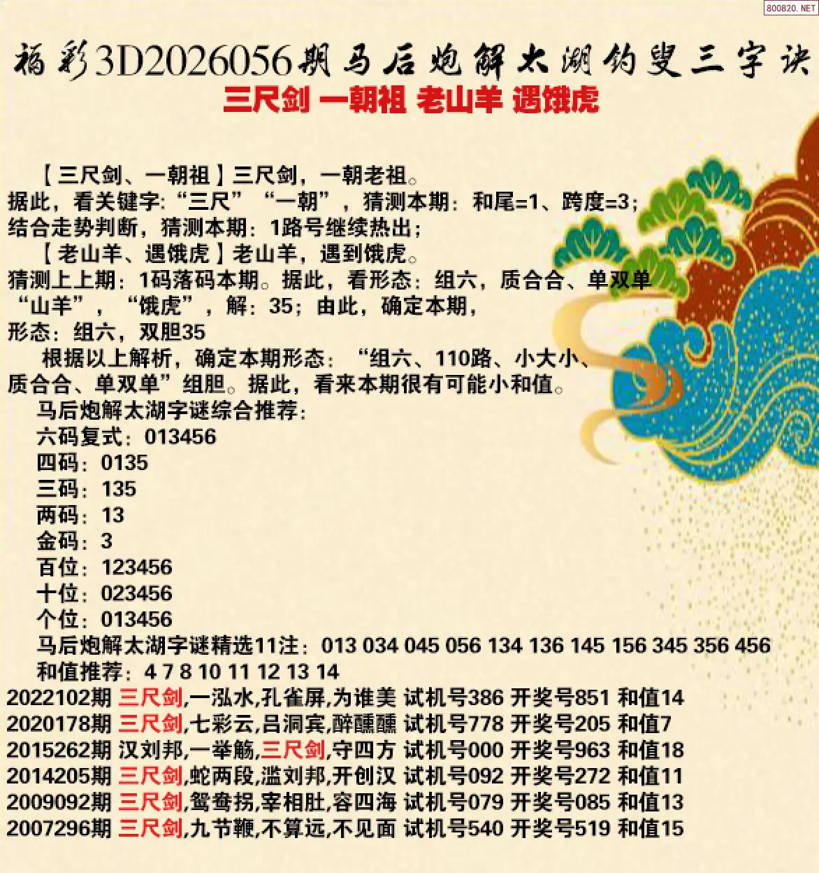 首页〉 解太湖 走势图 3D胆码3D预测3D图谜3D字谜解太湖3D技巧3D条件3D杀码天齐图库走势图工具试机号 26年056期马后炮解太湖字谜之-三尺剑 一朝祖 老山羊 遇饿虎 专题:马后炮解太湖谜 发布时间:2026-03-06 20:33 开奖:3D开奖结果3D近10期试机号 推荐:宝彩APP 免费方案 智能荐号 热点导航 公告: 天齐新版APP<中大多>上线,点击领鲜 最新文章 中大多 3D第2026056独家料一码 3D第2026056高手3码独胆精准 26年056期 3D专家解今日太湖字谜汇总(天齐网整理汇总)26056期3D丹东解太湖 天龙一语 布衣神算26年056期孔方来萃专解太湖钓叟三字诀26056期太湖字谜钓叟 - 三尺剑 一朝祖 老山羊 遇饿虎26年056期白鱼舟太湖钓叟三字诀解谜天涯草解太湖26年056期太湖 老山羊 更多解太湖 > 福彩3D 双色球 大乐透 排列三 更多> 3D胆码 3D预测 3D字谜 3D图谜 解太湖 3D条件 3D杀码 P3预测 P3图谜 P3字谜 P3条件 P3胆码 P3杀码 热点导航 天齐图库 走势图 工具图表 试机号 宝彩专家 智能荐号 菜单导航 关闭 福彩3D 3D专家 3D胆码 3D预测 3D字谜 3D图谜 解太湖 3D条件 3D杀码 3D技巧 3D走势图 体彩P3/P5 P3专家 P3预测 P3图谜 P3字谜 P3条件 P3胆码 P3杀码 P5预测 P3走势图 双色球 双色球专家 双色球预测 双色球杀号 双色球字图 双色球胆码 双色球走势 双色球技巧 大乐透 大乐透专家 大乐透预测 大乐透杀号 大乐透胆码 大乐透技巧 大乐透走势 天齐图库 七星彩 七星彩专家 七星彩预测 七星彩图谜 七星彩杀号 七星彩技巧 七星彩走势 天齐走势 七乐彩 七乐彩专家 七乐彩预测 七乐彩杀号 七乐彩技巧 七乐彩走势 热点导航 彩宝网 宝彩网 宝彩网 开奖公告 宝彩专家 牛票票