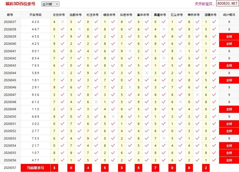 首页〉 3D杀码 走势图 3D胆码3D预测3D图谜3D字谜解太湖3D技巧3D条件3D杀码天齐图库走势图工具试机号 26057期彩宝贝福彩3D百十个位杀号 专题:3D杀码十专家 发布时间:2026-03-08 10:58 开奖:3D开奖结果3D近10期试机号 推荐:宝彩APP 免费方案 智能荐号 热点导航 公告: 天齐新版APP<中大多>上线,点击领鲜 最新文章 中大多 3D第2026057免费独胆连中五码 3D第2026057于海滨3D胆码预测 26年057期[浮梦一生]3d杀一胆 56错1526年057期[醉相思]3d杀一码 56错1426年057期[忆往昔]3d本期杀号 56错1826年057期[流星风雨]3d杀一码 56错2026年057期[财运亨通]杀一胆 56错1926年057期福彩3d[杨蜗牛]杀一码 56错18 更多3D杀码 > 福彩3D 双色球 大乐透 排列三 更多> 3D胆码 3D预测 3D字谜 3D图谜 解太湖 3D条件 3D杀码 P3预测 P3图谜 P3字谜 P3条件 P3胆码 P3杀码 热点导航 天齐图库 走势图 工具图表 试机号 宝彩专家 智能荐号 菜单导航 关闭 福彩3D 3D专家 3D胆码 3D预测 3D字谜 3D图谜 解太湖 3D条件 3D杀码 3D技巧 3D走势图 体彩P3/P5 P3专家 P3预测 P3图谜 P3字谜 P3条件 P3胆码 P3杀码 P5预测 P3走势图 双色球 双色球专家 双色球预测 双色球杀号 双色球字图 双色球胆码 双色球走势 双色球技巧 大乐透 大乐透专家 大乐透预测 大乐透杀号 大乐透胆码 大乐透技巧 大乐透走势 天齐图库 七星彩 七星彩专家 七星彩预测 七星彩图谜 七星彩杀号 七星彩技巧 七星彩走势 天齐走势 七乐彩 七乐彩专家 七乐彩预测 七乐彩杀号 七乐彩技巧 七乐彩走势 热点导航 彩宝网 宝彩网 宝彩网 开奖公告 宝彩专家 牛票票