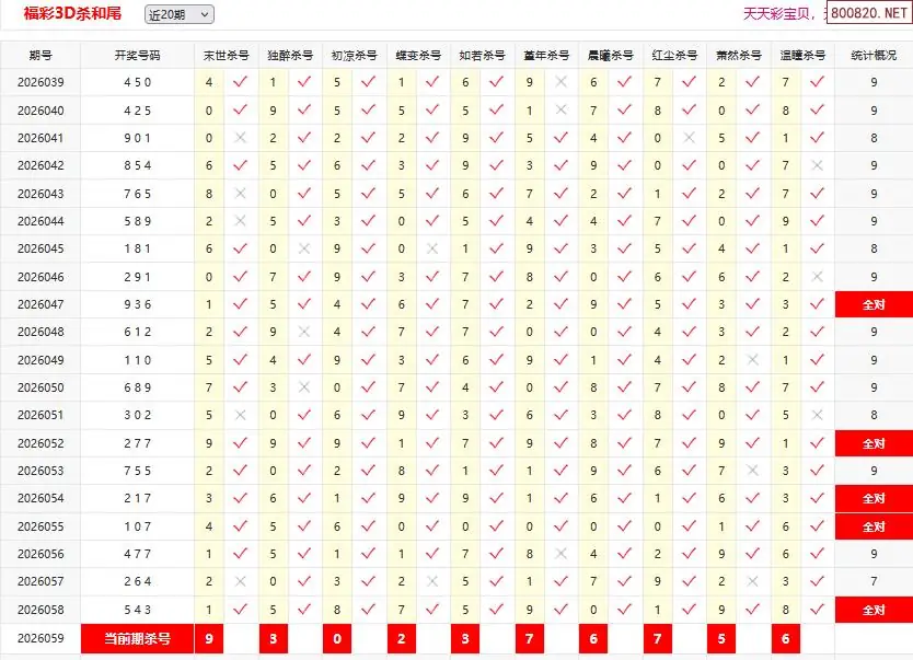 首页〉 3D条件 走势图 3D胆码3D预测3D图谜3D字谜解太湖3D技巧3D条件3D杀码天齐图库走势图工具试机号 26059期彩宝贝福彩3D杀和尾 专题:3d和尾十专家杀尾汇总 发布时间:2026-03-10 11:17 开奖:3D开奖结果3D近10期试机号 推荐:宝彩APP 免费方案 智能荐号 热点导航 公告: 天齐新版APP<中大多>上线,点击领鲜 最新文章 中大多 3D第2026059今日一注100%中奖 3D第20260593D六鬼5码复试5中4 [交友]第2026059期3D本期单挑和差2026年福彩3D059期[天涯草]精选断组-原创2026年福彩3D059期[圆圆]杀二码组合-原创2026年福彩3D059期[神算胆王]绝杀和值-原创2026年福彩3D059期[仙子]杀跨度-原创2026年福彩3D059期[无殇]专业断组-原创 更多3D条件 > 福彩3D 双色球 大乐透 排列三 更多> 3D胆码 3D预测 3D字谜 3D图谜 解太湖 3D条件 3D杀码 P3预测 P3图谜 P3字谜 P3条件 P3胆码 P3杀码 热点导航 天齐图库 走势图 工具图表 试机号 宝彩专家 智能荐号 菜单导航 关闭 福彩3D 3D专家 3D胆码 3D预测 3D字谜 3D图谜 解太湖 3D条件 3D杀码 3D技巧 3D走势图 体彩P3/P5 P3专家 P3预测 P3图谜 P3字谜 P3条件 P3胆码 P3杀码 P5预测 P3走势图 双色球 双色球专家 双色球预测 双色球杀号 双色球字图 双色球胆码 双色球走势 双色球技巧 大乐透 大乐透专家 大乐透预测 大乐透杀号 大乐透胆码 大乐透技巧 大乐透走势 天齐图库 七星彩 七星彩专家 七星彩预测 七星彩图谜 七星彩杀号 七星彩技巧 七星彩走势 天齐走势 七乐彩 七乐彩专家 七乐彩预测 七乐彩杀号 七乐彩技巧 七乐彩走势 热点导航 彩宝网 宝彩网 宝彩网 开奖公告 宝彩专家 牛票票