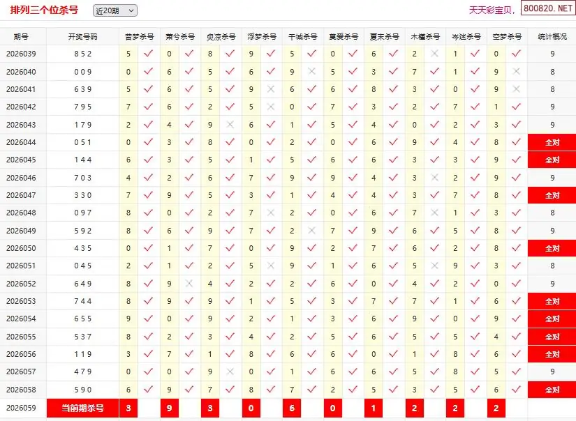首页〉 P3杀码 走势图 P3预测P3图谜P3字谜P3技巧P3条件P3胆码P3杀码P5预测天齐图库走势图工具试机号 体彩p326059期彩宝贝十大专家排三定位杀码 专题:p3十大专家杀号 发布时间:2026-03-10 11:17 工具:P3过滤缩水P3试机号走势图 推荐:宝彩APP 免费方案 智能荐号 热点导航 公告: 天齐新版APP<中大多>上线,点击领鲜 最新文章 中大多 排列三第2026059于海滨3D五码复试 排列三第20260593D六鬼5码复试5中4 [倪匡]体彩P3本期杀三码26年059期 58错34[许仲琳]体彩p3杀双胆26年059期 58错27[孟繁华]体彩P3绝杀独胆26年059期 58错14[曹文轩]排列三本期杀码26年059期 58错16[冰洁雪儿]体彩p3杀三胆26年059期 58错40[雪色无香]体彩P3杀三码推荐26年059期 58错36 更多P3杀码 > 福彩3D 双色球 大乐透 排列三 更多> 3D胆码 3D预测 3D字谜 3D图谜 解太湖 3D条件 3D杀码 P3预测 P3图谜 P3字谜 P3条件 P3胆码 P3杀码 热点导航 天齐图库 走势图 工具图表 试机号 宝彩专家 智能荐号 菜单导航 关闭 福彩3D 3D专家 3D胆码 3D预测 3D字谜 3D图谜 解太湖 3D条件 3D杀码 3D技巧 3D走势图 体彩P3/P5 P3专家 P3预测 P3图谜 P3字谜 P3条件 P3胆码 P3杀码 P5预测 P3走势图 双色球 双色球专家 双色球预测 双色球杀号 双色球字图 双色球胆码 双色球走势 双色球技巧 大乐透 大乐透专家 大乐透预测 大乐透杀号 大乐透胆码 大乐透技巧 大乐透走势 天齐图库 七星彩 七星彩专家 七星彩预测 七星彩图谜 七星彩杀号 七星彩技巧 七星彩走势 天齐走势 七乐彩 七乐彩专家 七乐彩预测 七乐彩杀号 七乐彩技巧 七乐彩走势 热点导航 彩宝网 宝彩网 宝彩网 开奖公告 宝彩专家 牛票票